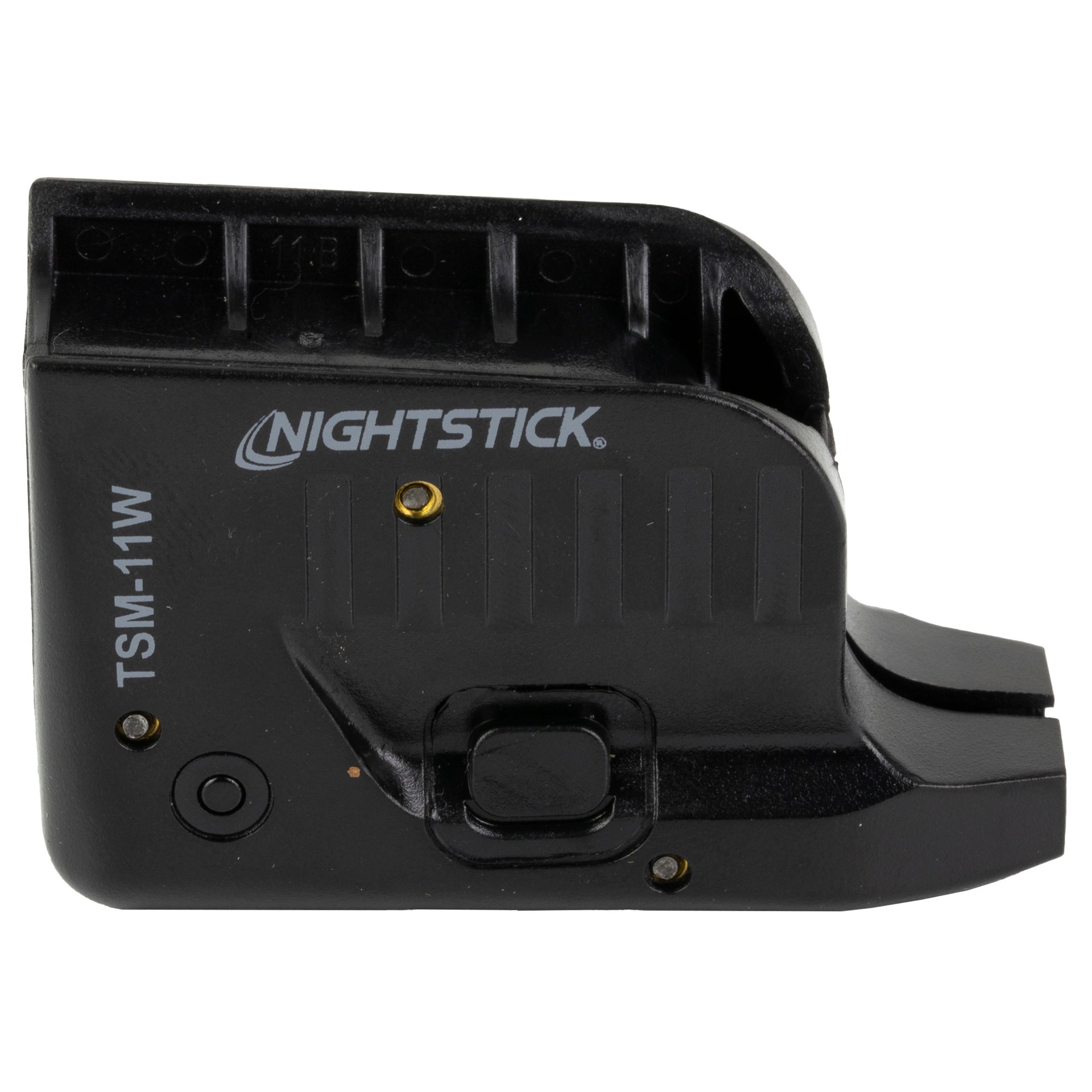 The TSM-11W Subcompact Tactical Weapon-Mounted Light for Glock G42/G43/G43X/G48 pistols uses a super-bright LED rated at 150 lumens working in conjunction with a precision-engineered miniature reflector to create a bright white beam of light rated at 104 meters. This weapon light features completely ambidextrous and intuitive toggle switches on each side of the light to operate the momentary-on and constant-on lighting modes.