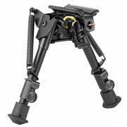 Harris Engineerings Ultra-Light 6"-9" Bench Rest Swivel/Sling Swivel Bipod is manufactured using high quality parts to ensure excellent function and sustainable use. It attaches to a Sling Swivel Stud. Carrying your rifle with a sling or shooting off-hand is not impeded by the use of a Harris Bipod. Hinged bases have tension adjustment to eliminate tremor or looseness in the crotch area of the bipod. Bipods have an all-weather black anodized finish.