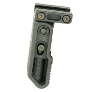 The LWRC vertical folding grip is a compact grip designed for the toughest environments. Serrated surfaces and oversized unlock buttons offer positive control and functionality even with wet, oily, or gloved hands. Molded out of tough glass-filled nylon, the LWRC vertical folding grip is stout and versatile enough to be used as a barrier stand-off device in the folded position, or as the perfect tool for manipulating short barreled rifles when deployed. Attaches to a Picatinny rail interface.