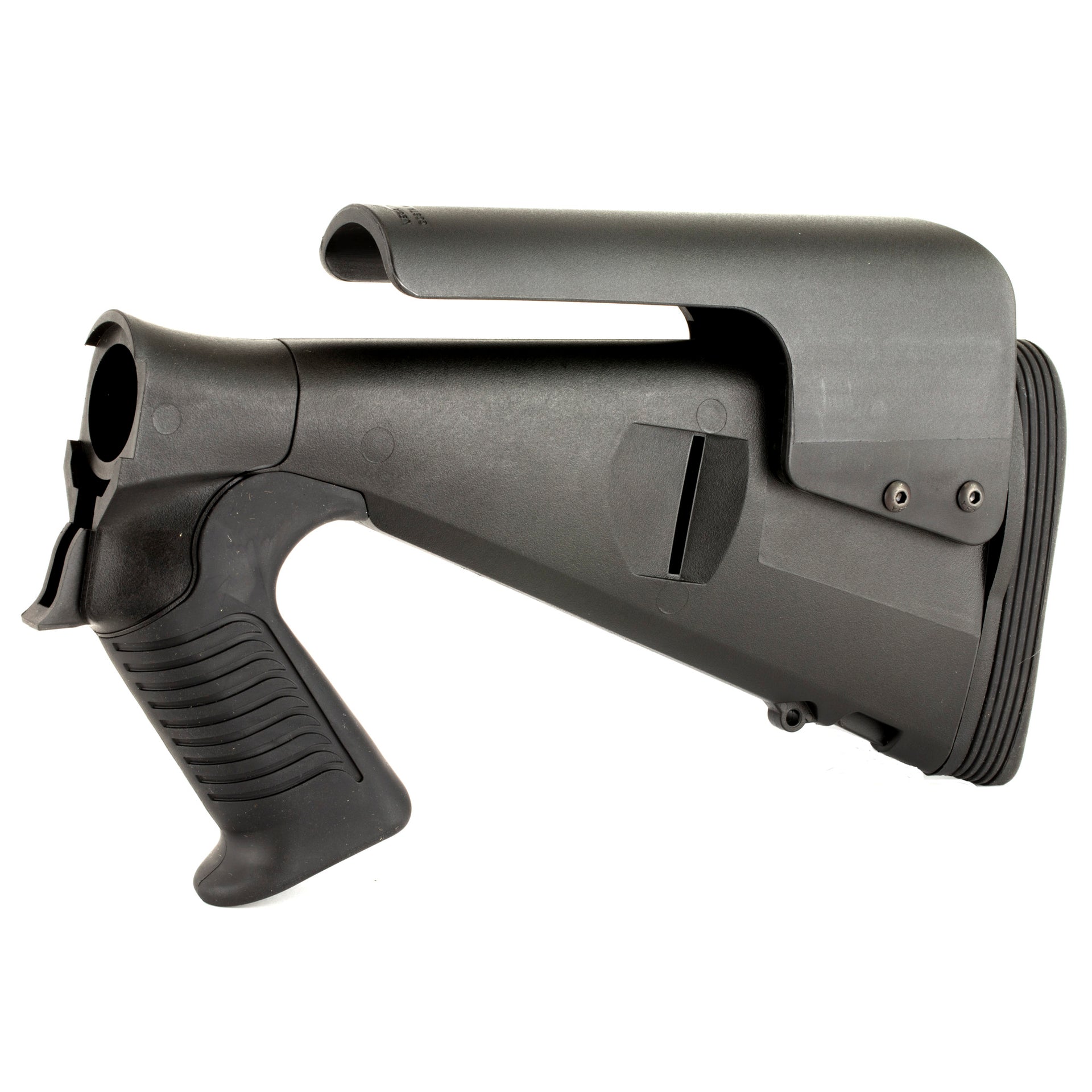 Mesa Tacticals Urbino Pistol Grip Stock for the Benelli M4 is very popular in the law enforcement market due to the shorter length of pull, allowing the user to wear body armor or bulky clothing without extending their reach. The reduced length-of-pull (LOP) makes the Urbino the first truly tactical stock for the Benelli M4. The Urbino Tactical stock is durable, easy to shoulder, and will not slip. It is a fixed-length pistol grip shotgun stock made from injection-molded glass-filled nylon. Developed to meet the needs of law enforcement and military operators, the rugged Urbino Tactical stock features a 12-1/2" inch LOP, soft urethane rubber grip, adjustable cheek riser and Limbsaver Buttpad.
