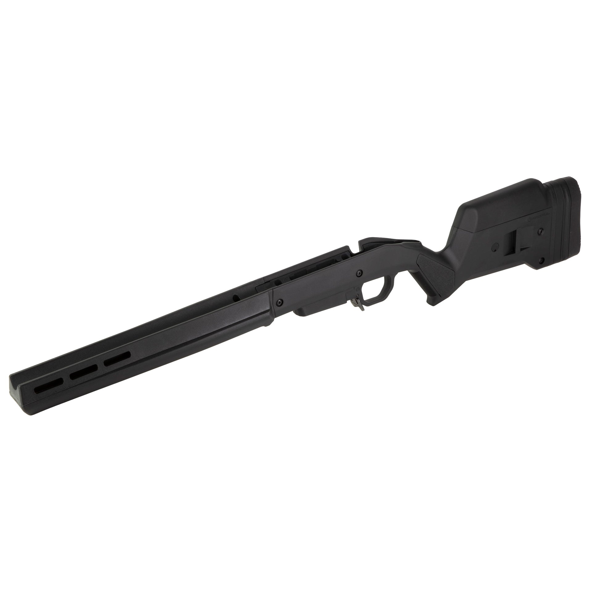 Designed as a cost-effective upgrade for Ruger American Predator & Ranch rifle models equipped with an AR magazine-compatible stock, the Hunter American Stock - Ruger American Short Action, STANAG Magazine Well features a fully adjustable length of pull, comb height, enhanced ergonomics, and reinforced construction. Constructed of reinforced polymer and an anodized aluminum bedding block with steel recoil lugs, the Hunter American Stock - Ruger American Short Action, STANAG Magazine Well requires no gunsmithing and is your true ,drop-in, solution. Tune your rifle to fit your needs with shooter-focused ergonomics that allow LOP adjustments from 13.0" to 15.0" with the included .50" spacers. The stock also comes M-LOK compatible to accept a broad range of accessories to enhance your shooting experience.