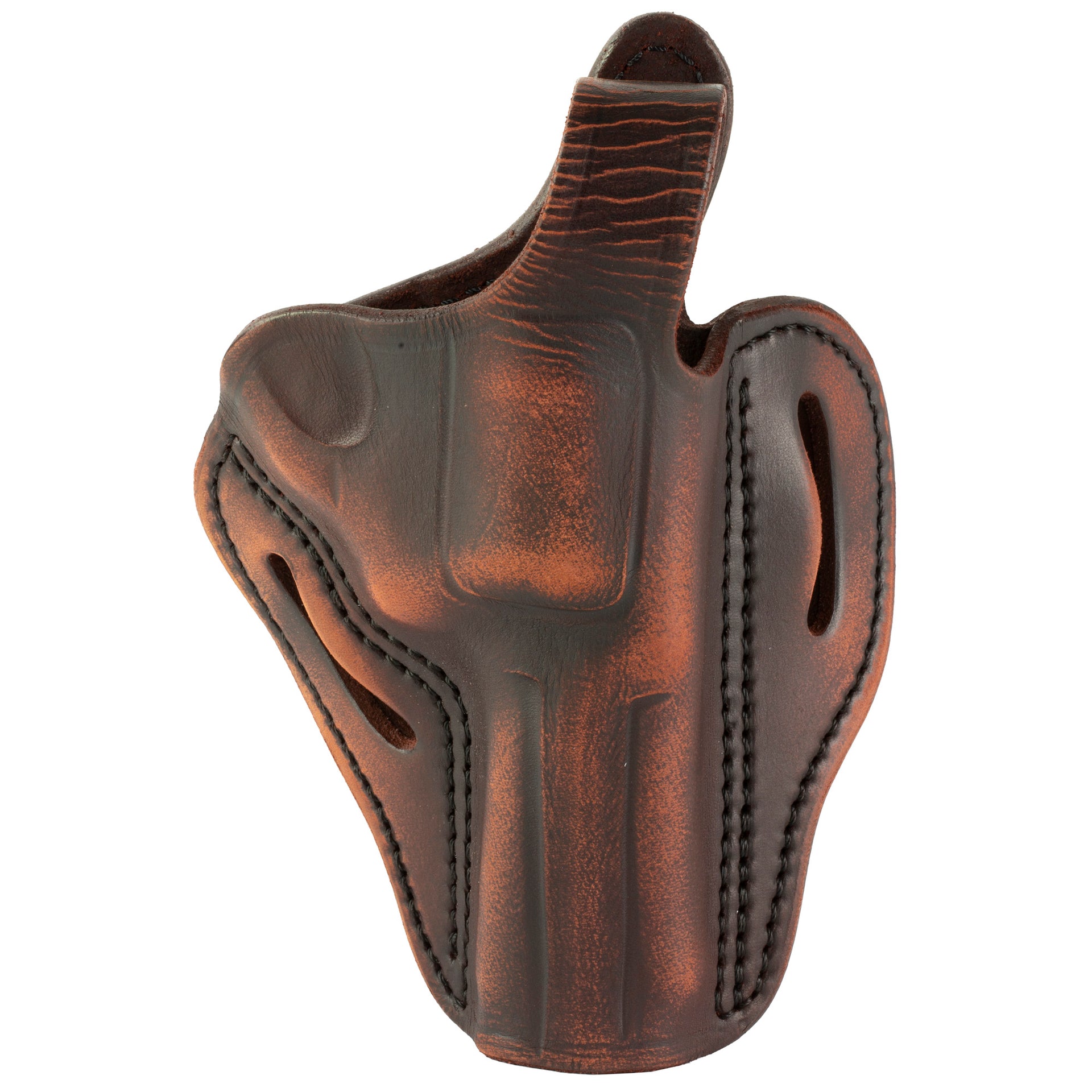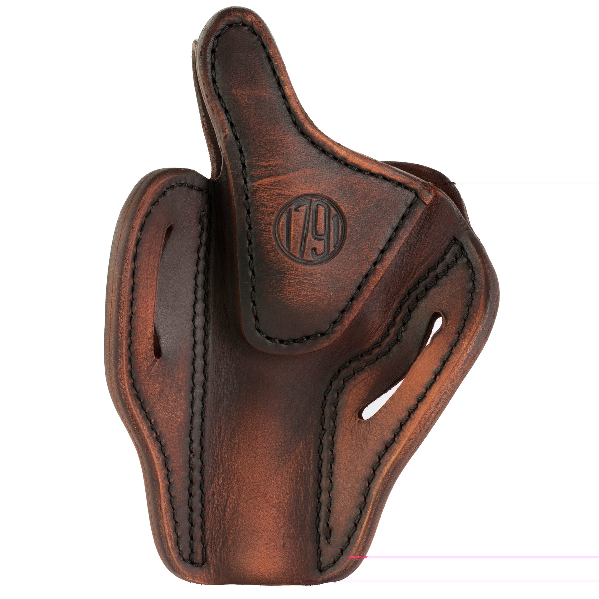 The 1791 Gunleather RVH2 K-Frame Revolver Belt Holster, hand-crafted from 1791s premium 100% Certified American, Heavy Native Steerhide leather, is thoughtfully designed to support K-Frame sized revolvers with barrels up to 6 inches in length. Show your Revolver some love with quality leather that offers excellent retention for comfortable and reliable all-day carrying. This OWB revolver belt holster is a perfect match for S&W 686, Ruger GP100, and many other K-Frame size revolvers. Plus, with the many colors choices 1791 offer the RVH2, you can find the best compliment for your revolver and best fit for your personal style. Fits 3" to 4" Barrels.