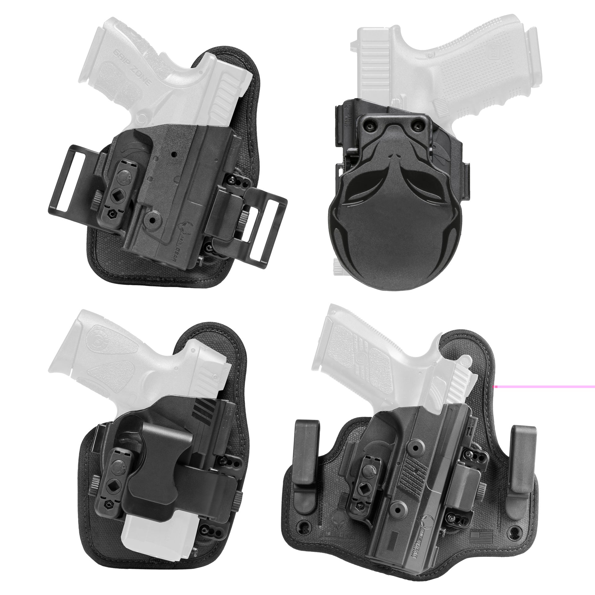 - IWB, Appendix carry, OWB belt slide, and OWB paddle