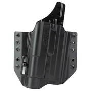 The Bravo Concealment Adaptive (BCA) OWB concealed carry holster is designed to be the best outside the waistband option for everyday concealed carry. Their outside the waistband (OWB) holster fits your gun and light combo perfectly. This is because they design their molds in-house with the latest CAD design. They 3-D scan the actual gun and build a solid off the cloud for the most precise fit within three-thousandths of an inch. Whether you open carry or conceal carry, the BCA OWB holster rides high and close to the body for maximum concealment while perfectly fitting your gun. They also have a slight curve to help wrap around the natural curvature of your waistline. Bravo holsters have a very smooth pocket for a quick and pronounced, audible click when reholstering. Since the holsters are made specifically for your gun and light, it keeps it locked and tight with no movement when wearing your gun. This keeps the finish of your gear in very good condition. Holster will not retain the pistol without the weapon light.