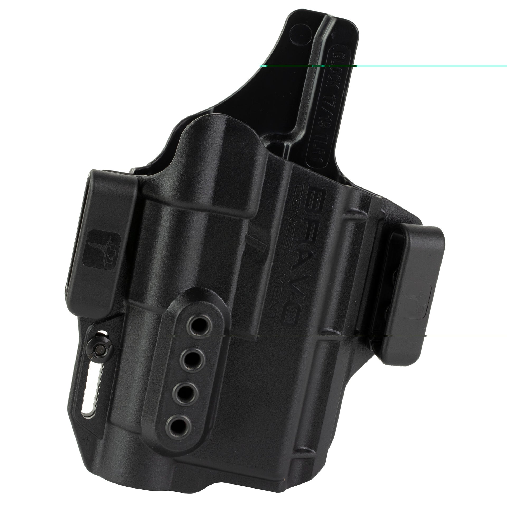 The Bravo Concealment Adaptive (BCA) IWB concealed carry holster is designed to be the best inside the waistband option for everyday concealed carry. Their inside the waistband (IWB) holster fits your gun and light combo perfectly. This is because they design their molds in-house with the latest CAD design. They 3-D scan the actual gun and build a solid off the cloud for the most precise fit within three-thousandths of an inch. The BCA OWB holster rides close to the body for maximum concealment while perfectly fitting your gun. They also have a slight curve to help wrap around the natural curvature of your waistline. Bravo holsters have a very smooth pocket for a quick and pronounced, audible click when reholstering. Since the holsters are made specifically for your gun and light, it keeps it locked and tight with no movement when wearing your gun. This keeps the finish of your gear in very good condition. Holster will not retain the pistol without the weapon light.