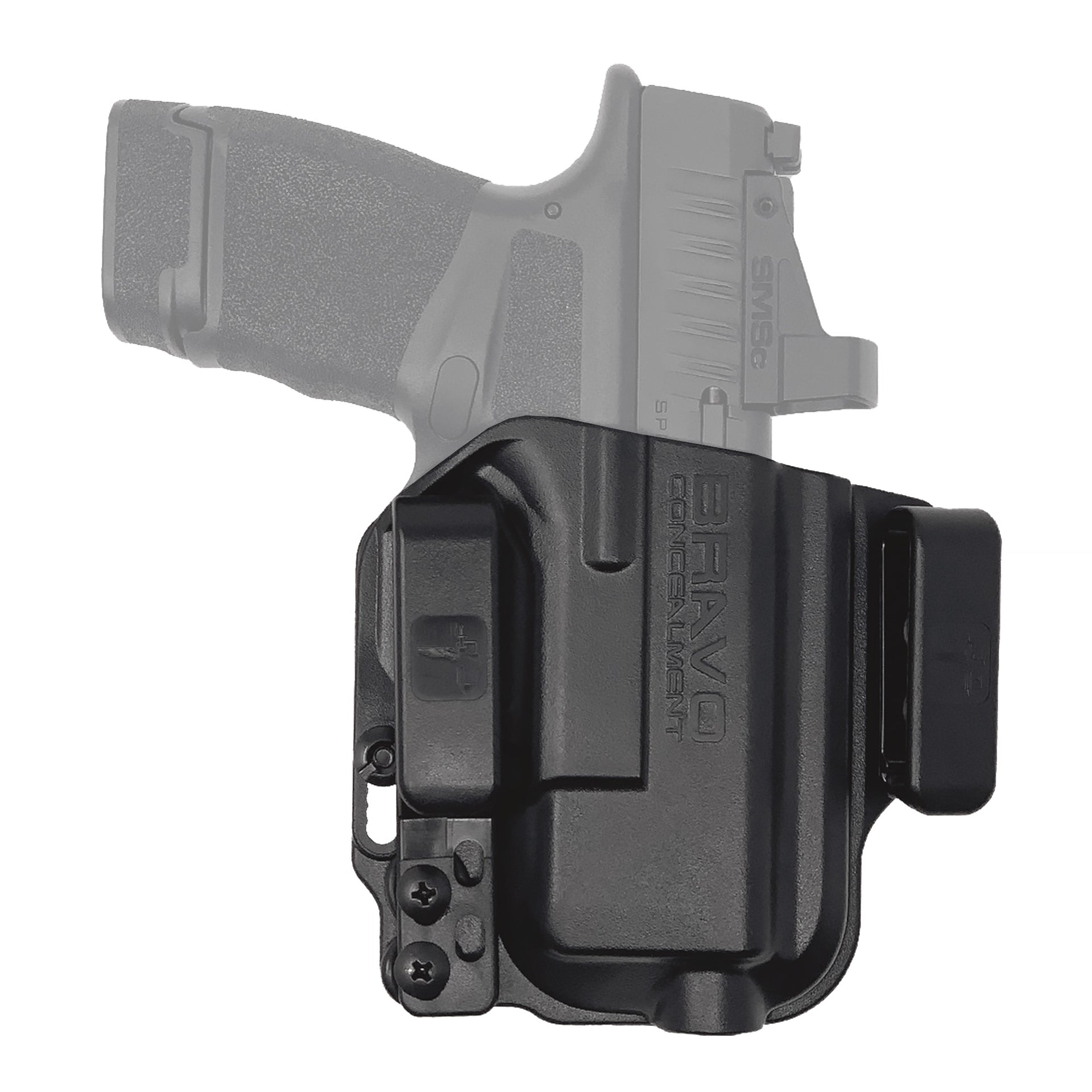 The Bravo Concealment Adaptive (BCA) IWB concealed carry holster is designed to be the best inside the waistband option for everyday concealed carry. Their inside the waistband (IWB) holster fits your gun perfectly. This is because they design their molds in-house with the latest CAD design. They 3-D scan the actual gun and build a solid off the cloud for the most precise fit within three-thousandths of an inch. The Torsion IWB holster rides close to the body due to BCAs patented Torsion technology. This takes the gun and cants or twists it towards your body for maximum concealment. They also have a slight curve to help wrap around the natural curvature of your waistline. Bravo holsters have a very smooth pocket for a quick and pronounced, audible click when reholstering. Since the holsters are made specifically for your gun and light, it keeps it locked and tight with no movement when wearing your gun. This keeps the finish of your gear in very good condition.