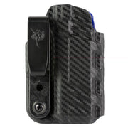 The Slim-Tuk Carbon Fiber is a minimal ambidextrous IWB holster fashioned from Kydex sheet. One of the most unique features about this IWB holster is that it uses DeSantis tuck-able 360 C-Clip, which affords the wearer unlimited mounting options. The hardware can easily be reversed to change from right to left hand. The Slim-Tuk is precision molded and has adjustable tension and a rugged 1.75" nylon clip. Carbon Fiber exterior finish with a Blue Kydex interior.