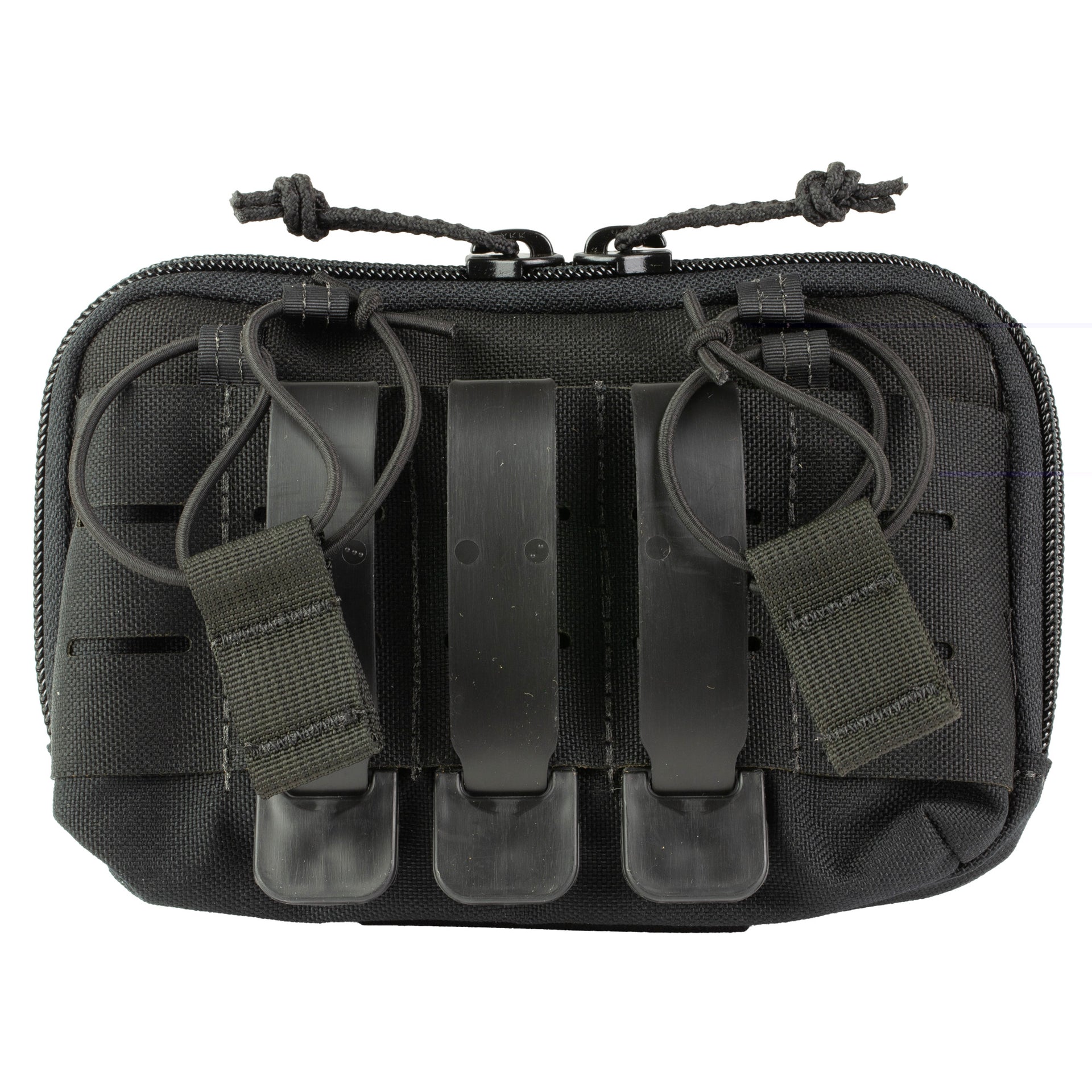This horizontal admin pouch is another take on their old favorite, the Mini Modular Admin Pouch, and is constructed from heavy-duty nylon laminate. The two rear slots with bungee retention tabs are perfect for two .308 magazines or smaller.