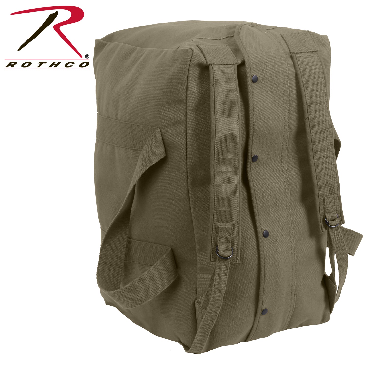 Rothco’s Tactical Canvas Cargo Bag / Backpack is built to be more than just a bag for active-duty personnel; it's a versatile travel companion perfect for storing tools, equipment, and essential gear. Constructed with heavyweight canvas material, this durable duffle bag is designed to bear the weight of your supplies while you’re on the go. The Tactical Canvas Cargo Bag features a massive main compartment measuring approximately 24 inches x 15 inches x 13 inches, providing ample space for all your items. The full-length heavy-duty zipper with a snap flap cover ensures easy access to your essentials, keeping them secure and protected. Sturdy dual reinforced crosshatch stitched web handles offer reliable carrying options. For added convenience, the bag includes adjustable backpack-style padded shoulder straps with D-rings, allowing you to haul your gear comfortably. Whether you're heading on a trip, carrying tools, or organizing equipment, Rothco’s Tactical Canvas Cargo Bag / Backpack is designed to meet your needs with its robust construction and versatile carrying options. Made from Rothco’s durable heavyweight canvas fabric, this superior material is naturally water-resistant, rugged, and is built for the long haul. No one comes close to Rothco’s collection of ultra-premium canvas bags and packs.