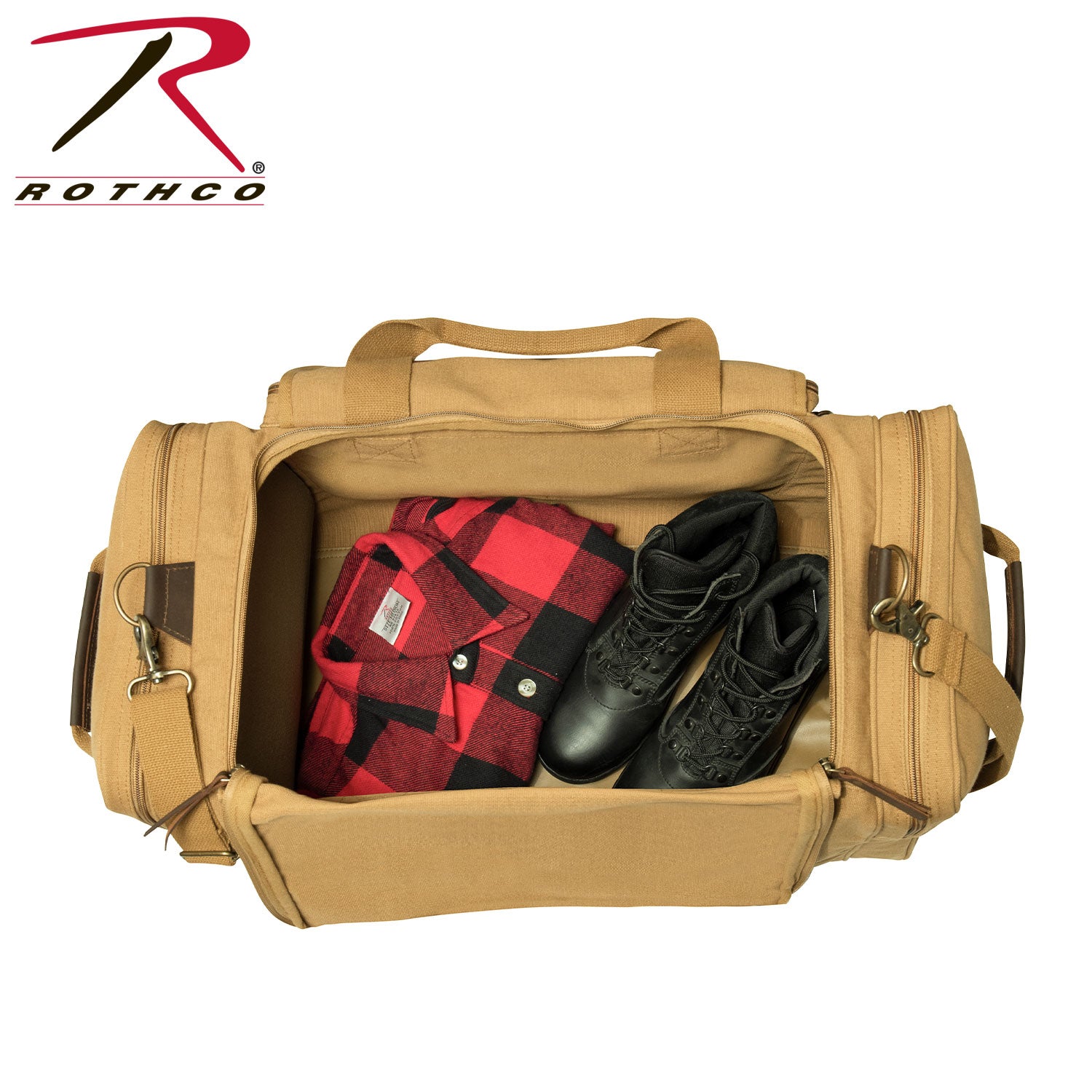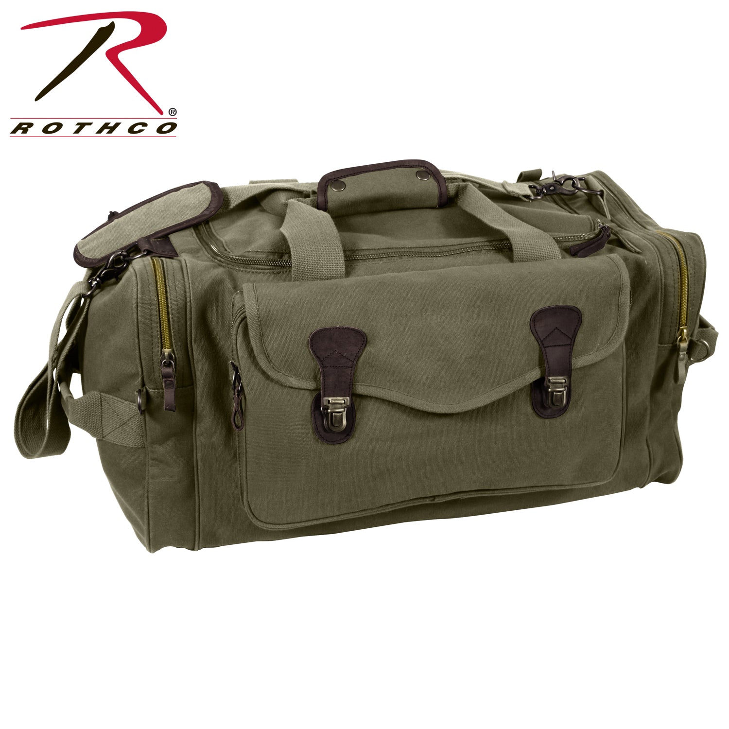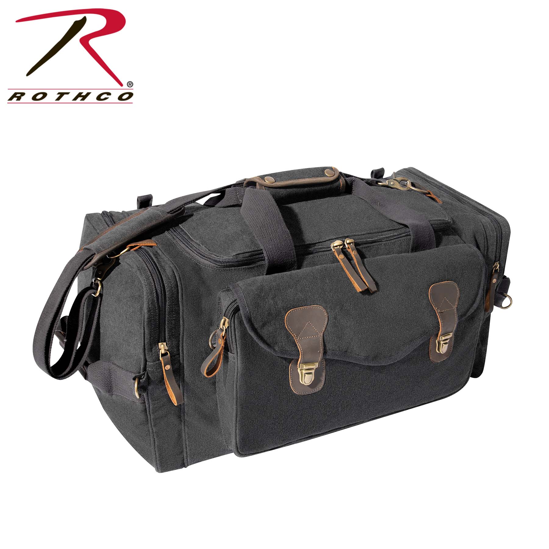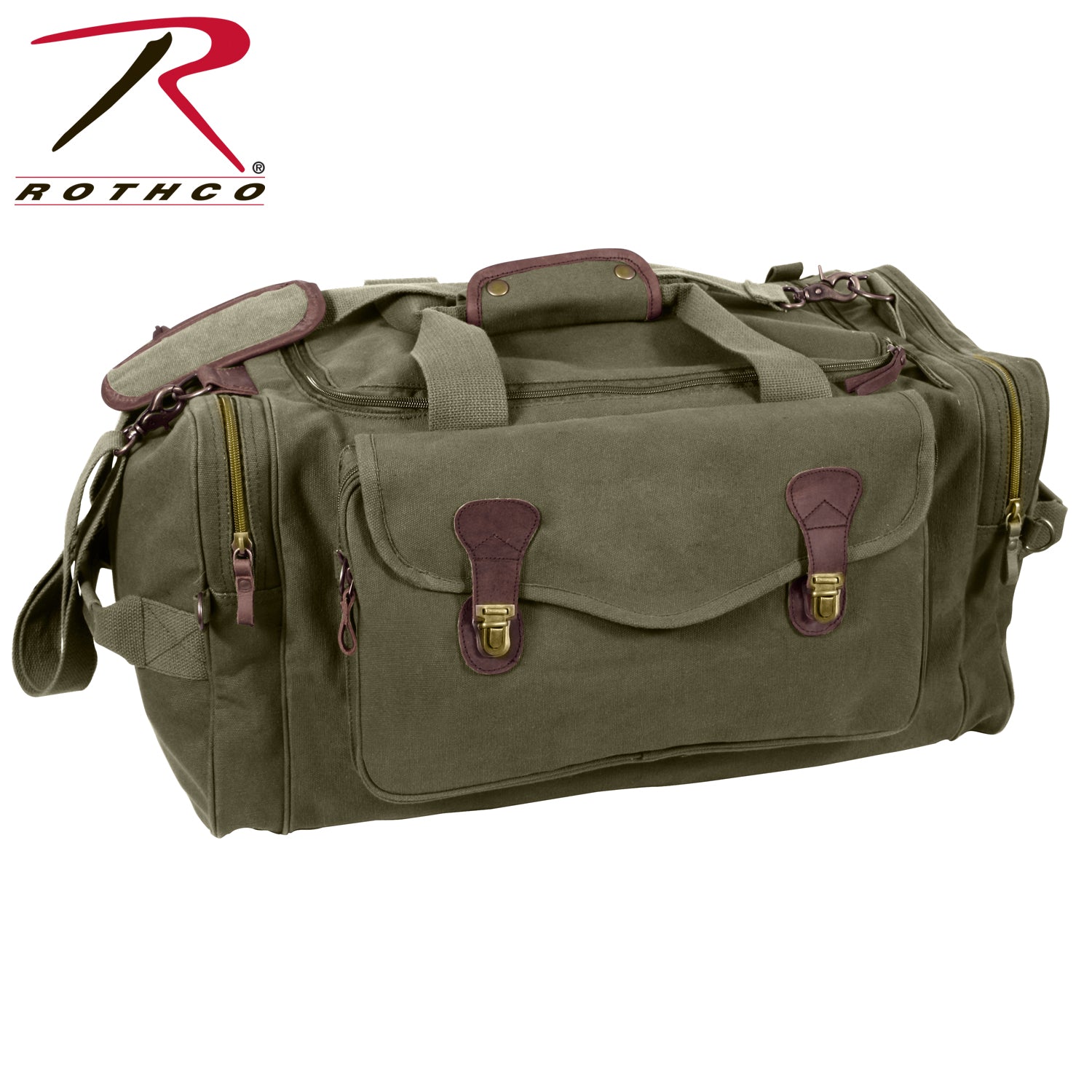 Experience the perfect blend of style and functionality with Rothco's Canvas Long Weekend Bag. Designed for your getaway essentials, this bag features a large main compartment measuring 12 inch x 11 inch x 23 inch, ensuring ample space for your next adventure. Constructed from robust yet soft cotton canvas, it offers long-lasting durability. The lined polyvinyl inner bottom protects your belongings from getting wet. 2 large side zippered pockets provide convenient storage for toiletries, shoes, and electronics, while the front zippered pouch with flap and push-button buckles keeps important travel documents safe and easily accessible on the go. The reinforced top and dual side carry handles, adorned with leather trim, add a touch of sophistication. Leather zipper pulls and accents complete the look, making it a stylish travel companion. Versatile and practical, this bag is perfect for weekend trips and makes an excellent gift. Its spacious design is suitable for screen printing and embroidery, allowing you to personalize it with your unique style. Made from Rothco’s durable heavyweight canvas fabric, this superior material is naturally water-resistant, rugged, and is built for the long haul. No one comes close to Rothco’s collection of ultra-premium canvas bags and packs.