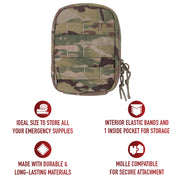 Rothco's MOLLE Tactical Trauma & First Aid Kit Pouch is your reliable companion for emergency situations. Measuring 7 inch x 8 inch x 3 inch, the emergency pouch provides ample space to organize all your first aid essentials efficiently. Featuring a dual zippered design, accessing your supplies becomes quick and hassle-free. Crafted from durable polyester material, this pouch ensures long-lasting performance. The inside elastic bands and pocket offer secure storage for your medical items, keeping them in place during movement. Its MOLLE compatibility allows easy attachment to tactical vests and packs, ensuring accessibility whenever needed. With Rothco's MOLLE Tactical Trauma & First Aid Kit Pouch, you can be prepared for any emergency with confidence.