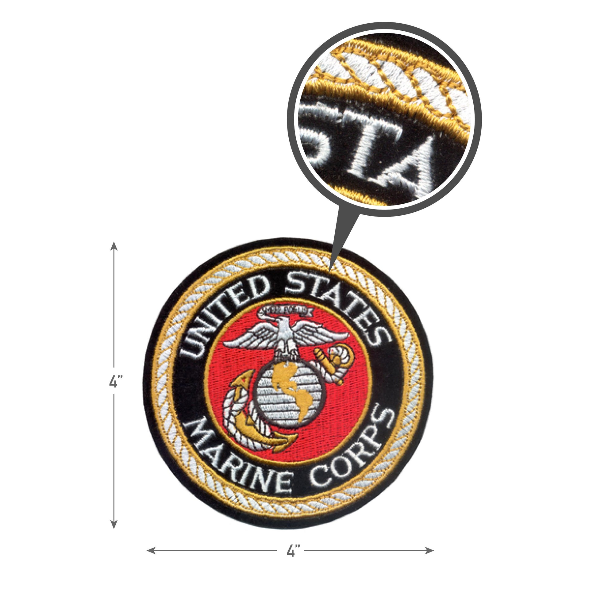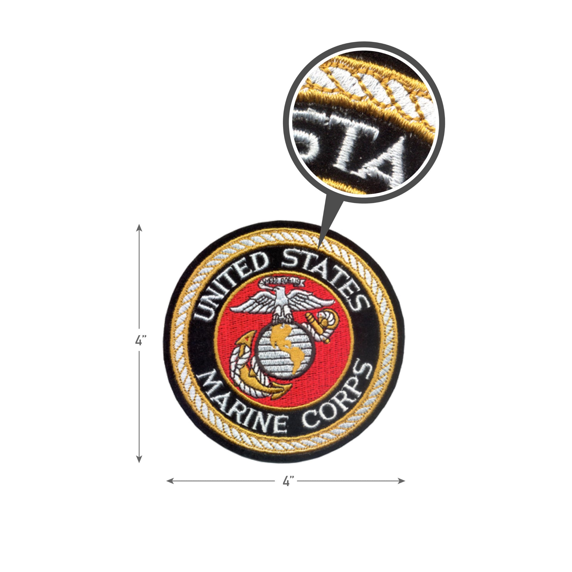 Rothco’s Deluxe USMC Round Patch is available in two sizes. This iron on/sew on military patch is made of polyester material and embroidered with cotton thread. The front of the patch features “United States Marine Corps” in white and the Marines Globe and Anchor emblem, centered.
