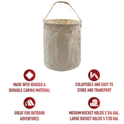 Rothco's Canvas Water Bucket serves multiple purposes, from carrying water to storing tools and supplies during outdoor activities. Constructed from heavy-weight canvas, these collapsible buckets are easy to store and transport. The portable water buckets offers extreme durability and convenience in two sizes: Large (13 inch x 11 inch) and Medium (10 inch x 9 inch). The medium-sized bucket holds 2 3/4 gallons, while the large one holds 5 7/20 gallons. Whether you're camping, hiking, or working outdoors, these versatile buckets are essential companions.