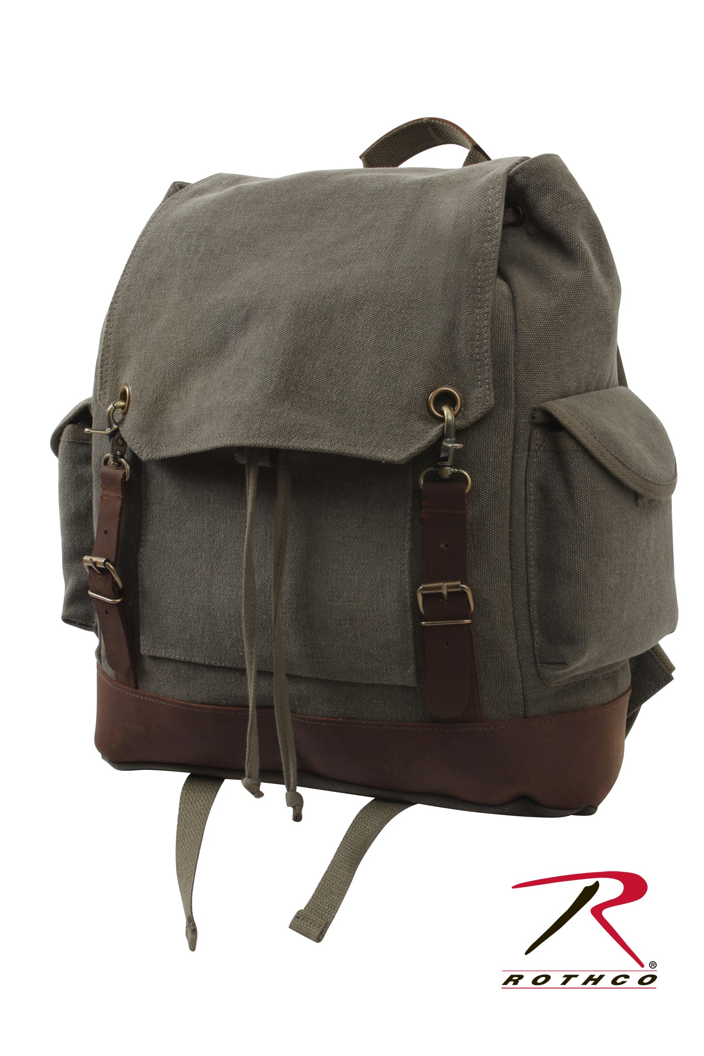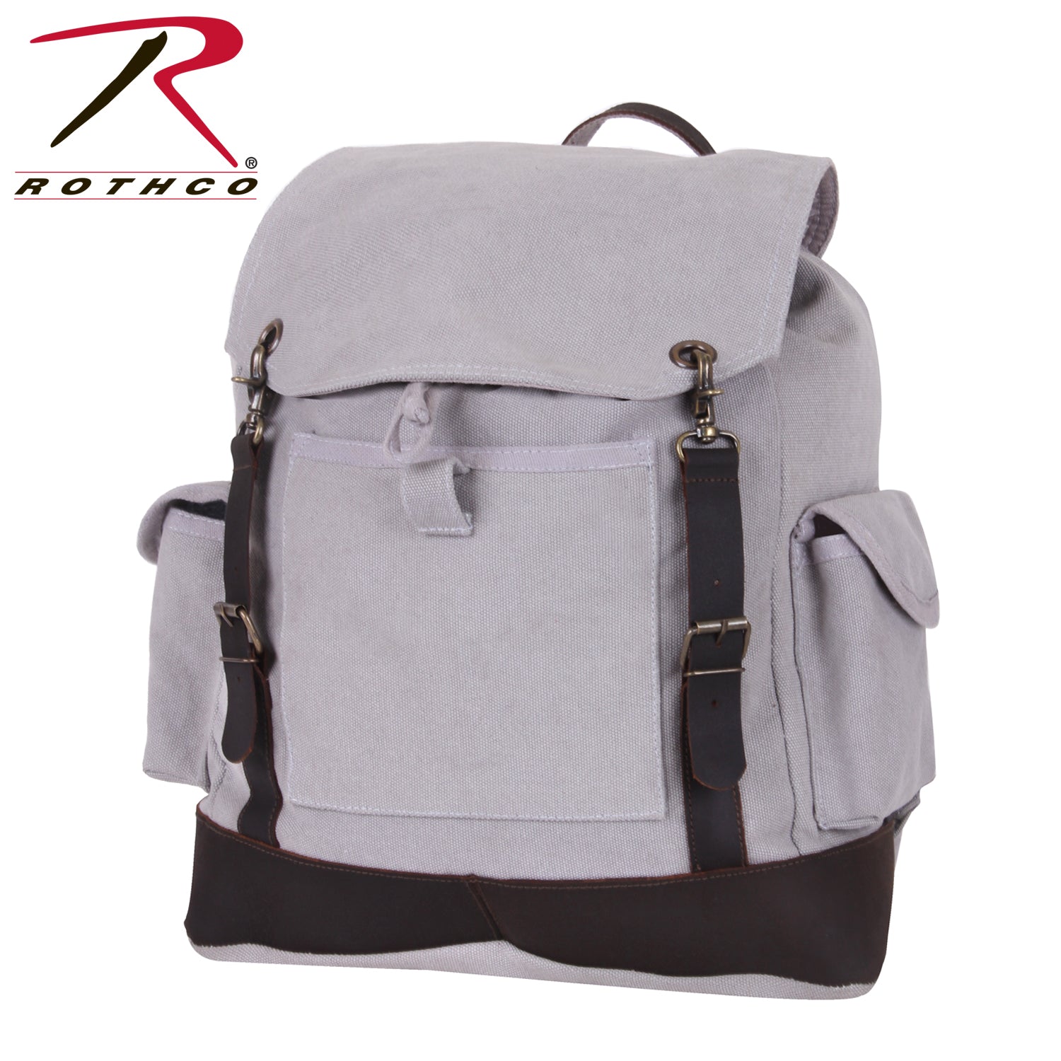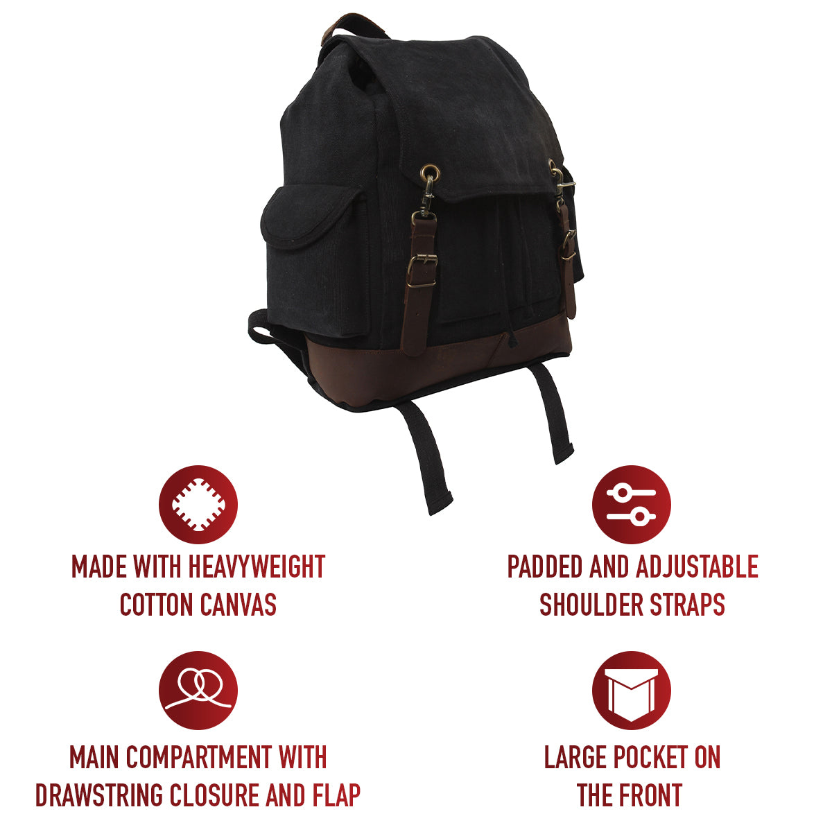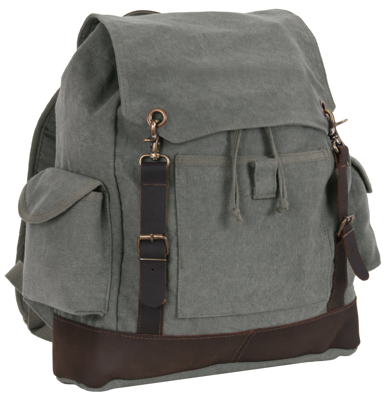 Explore in style with Rothco's Vintage Expedition Rucksack. Crafted from robust cotton canvas with leather accents, this vintage style backpack is perfect for urban outings, wilderness treks, everyday use, and more. Made from Rothco’s durable heavyweight canvas fabric, this superior material is naturally water-resistant, rugged, and is built for the long haul. No one comes close to Rothco’s collection of ultra-premium canvas bags and packs.