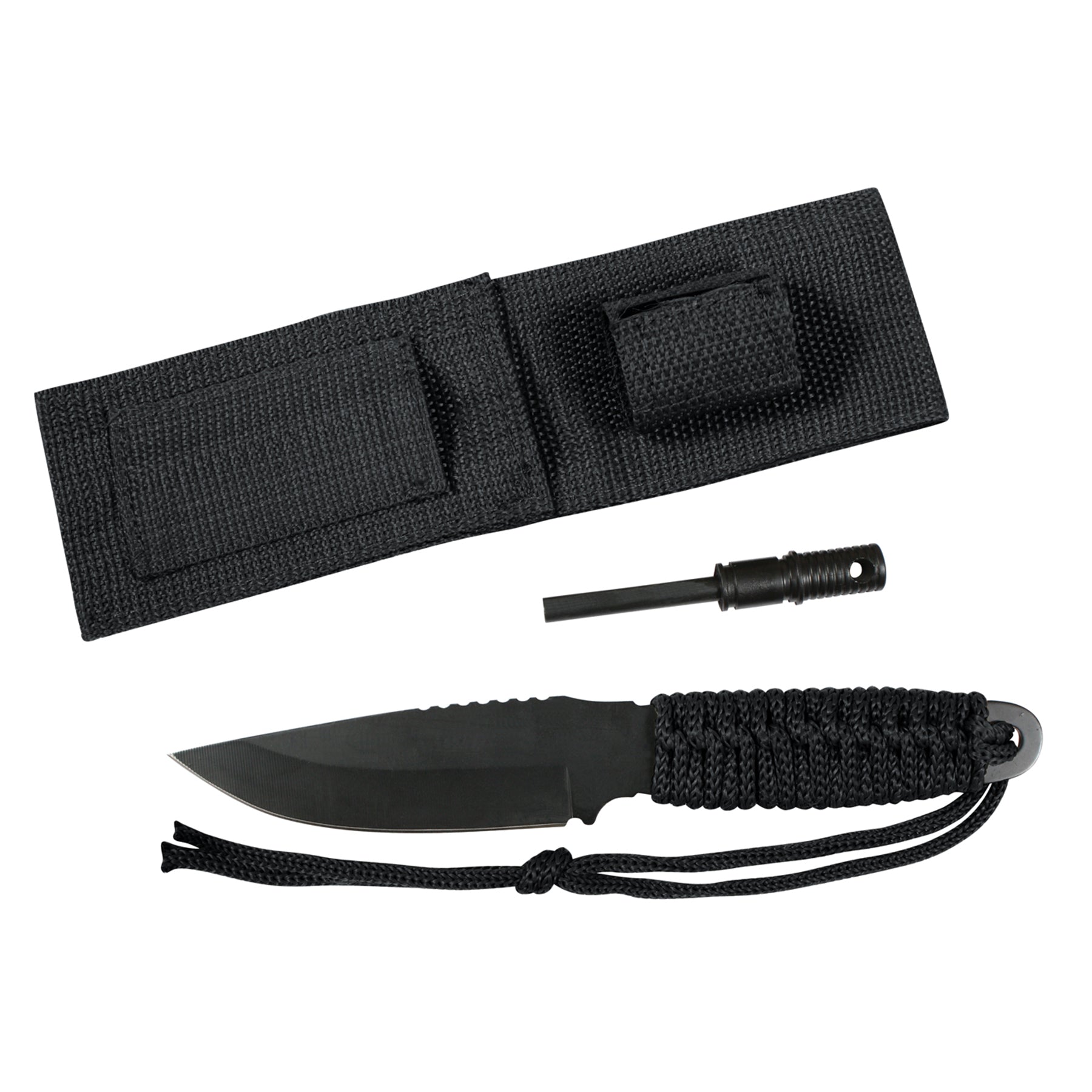 Rothco's Paracord Knife with Fire Starter is a must-have tool for any outdoor enthusiast or survivalist. Measuring 8 inches in total length, this versatile knife features a 3.5-inch black blade made from 420 stainless steel, ensuring durability and sharpness. The handle is wrapped with sturdy paracord, providing a comfortable and secure grip, while also offering an additional survival tool. The survival knife comes with a durable polyester sheath, complete with a hook & loop handle strap to keep it securely in place. Attached to the sheath is a 3 1/8-inch magnesium fire starter and a convenient storage pouch, making it easy to ignite a fire in any condition. Whether you're preparing for a camping trip or assembling your bug out bag, Rothco’s Paracord Knife with Fire Starter is an essential tool that combines practicality and reliability in a compact design.