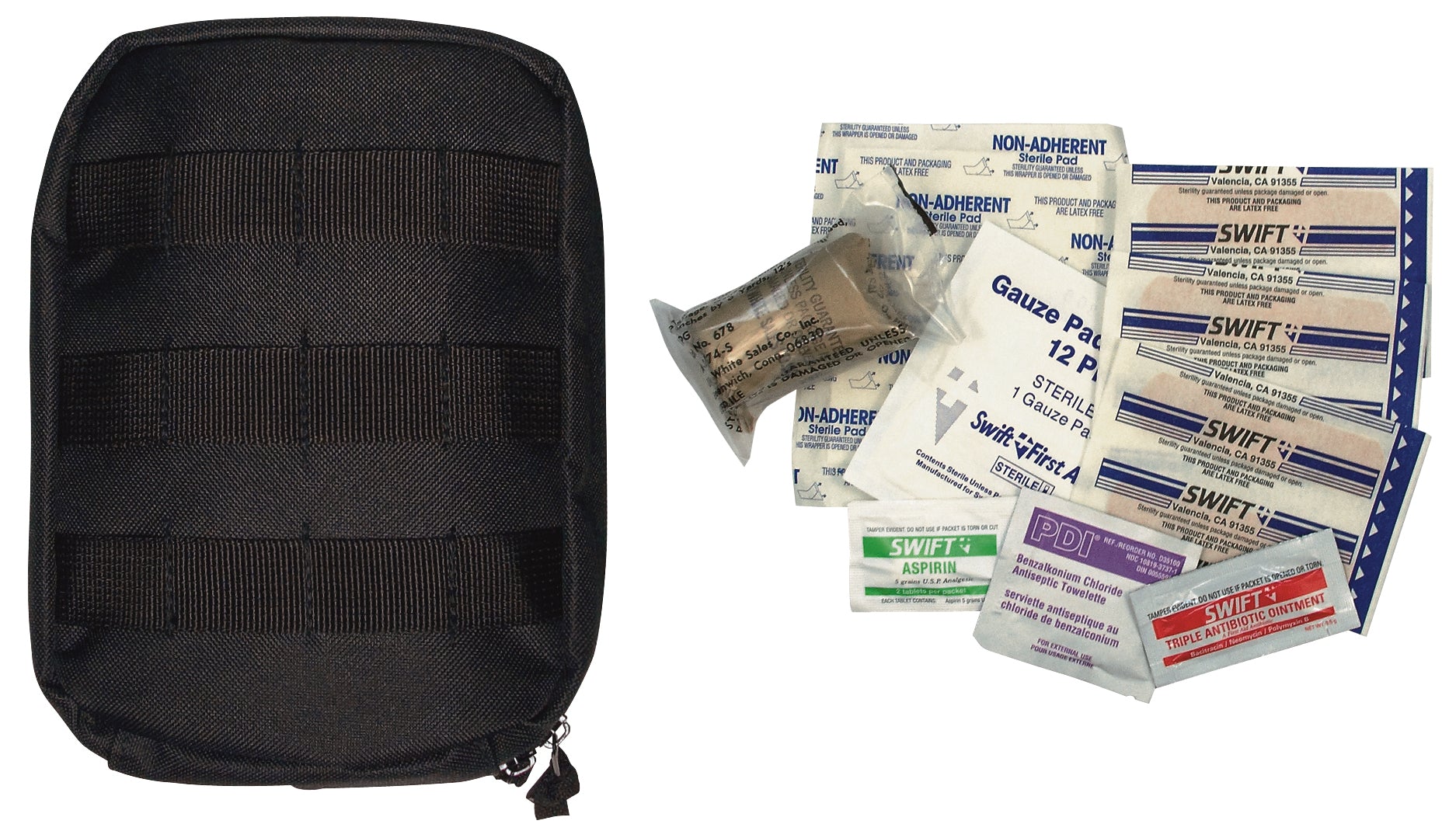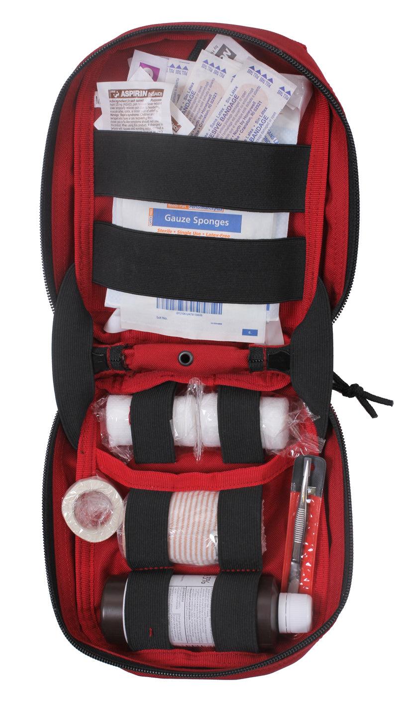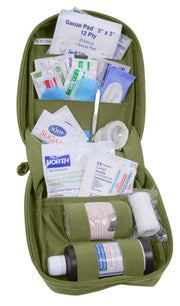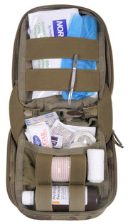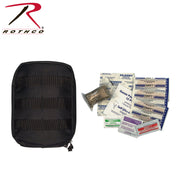 Prepare for emergencies with Rothco's MOLLE Tactical First Aid Kit, a compact and portable solution for any adventure. This MOLLE-compatible medical pouch is designed for easy attachment to your tactical gear, whether it's our Transport Packs or tactical bags. With over 40 essential medical items included, you'll be ready for various emergencies. The kit features over 20 bandages in various sizes, alcohol prep pads, antibiotic ointment, soap, peroxide, a cold pack, aspirin packets, tweezers, examination gloves, and more. Whether you're hiking, camping, or on duty, this kit provides peace of mind knowing you have the necessary supplies on hand. Be prepared for any situation with Rothco's Med-Prep MOLLE Tactical Kit. Contents of the Tactical First Aid Kit include: Two military bandages, One MOLLE Tactical Pouch, Four 2" steripads, Two 3" steripads, Two 1/2" adhesive tape roll, Eight 3/4" x 3" bandages, Four 1 1/2" x 7/8" bandages, One 3" elastic bandage, One 3" x 4" telfa pad, Two medium alcohol prep pad, Two antibiotic ointment, Two BSKtowelette, Two small packets of sugar, One 1/2 oz. soap, One 4 oz. peroxide, One medium cold pack, Two aspirin/pkg of 2, One tweezer, and one pair of examination gloves.