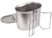 Rothco's Stainless Steel Canteen Cup and Cover Set is the perfect addition to your camping gear, bug out bag, or outdoor cooking setup. Made from durable heavy gauge stainless steel, this canteen cup and cover set is built to withstand rugged use while ensuring your food and water stay fresh. The convenient lid helps retain heat and keep contents secure, making it ideal for both boiling water and cooking meals in the wild. The butterfly handle design provides a secure grip and easy handling, even when the cup is hot. Measuring 4 1/2 inches x 2 7/8 inches at the bottom, 5 1/4 inches x 3 1/4 inches at the top, and 3 3/4 inches in height, this versatile set is compact enough to carry in your pack yet spacious enough for your needs. Whether you're hiking, camping, or preparing for emergencies, Rothco's Stainless Steel Canteen Cup and Cover Set is a reliable and essential tool.