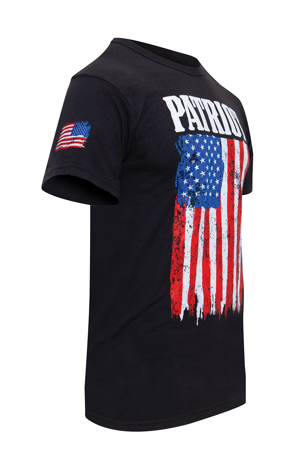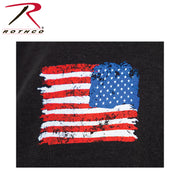 Prominently present your pride, patriotism, and enthusiasm for the United States of America with this American Flag T-shirt by Rothco. The patriotic t-shirt showcases one distressed American flag on the front, and another on the right sleeve. The lightweight cotton-blend on the flag shirt is perfect for casual wear while also being breathable enough to make an ideal workout shirt. Available in sizes small through 3XL.