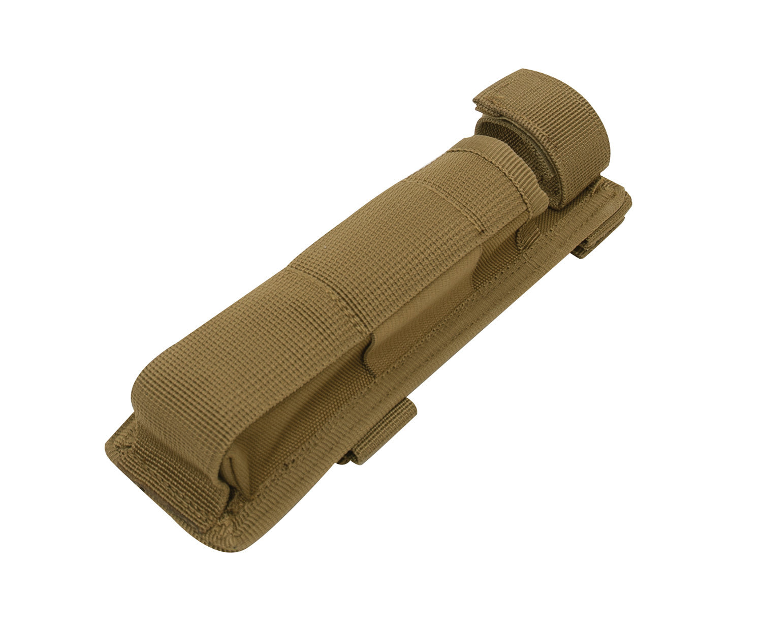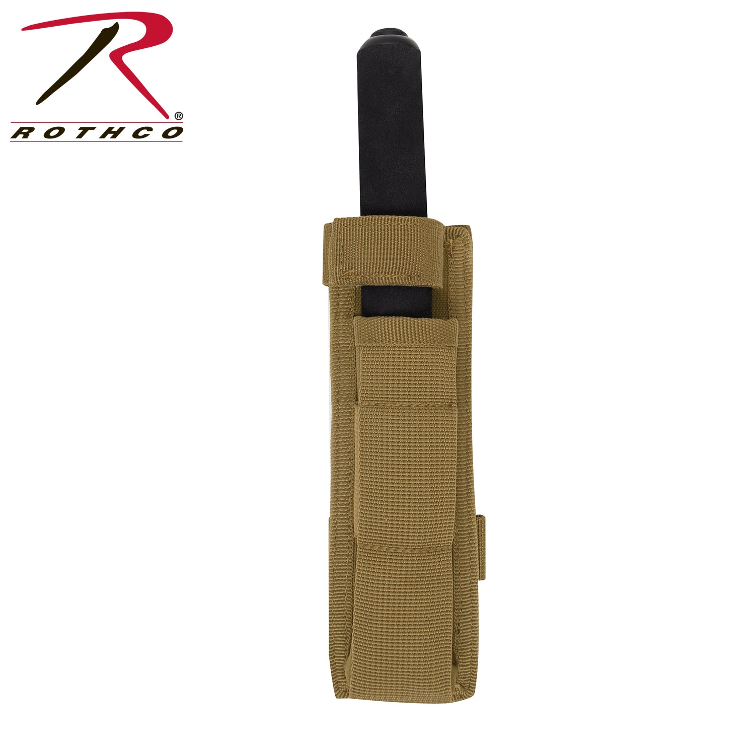 Rothco’s MOLLE Baton Holder is designed for law enforcement and public safety professionals on-the-job. This convenient accessory is optimized for 21 inch batons, but can also accommodate 26 and 31 inch batons. The baton pouch features an elastic band in the center and a hook and loop web strap at the top to secure your baton reliably. Two 5 inch vertical and two smaller horizontal hook and loop MOLLE straps on the back enable you to attach the baton holder to MOLLE belts, tactical vests, and assault packs. MOLLE attachment measures 7.5 inches X 2.25 inches.