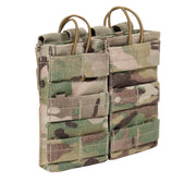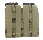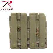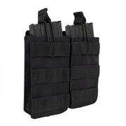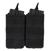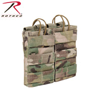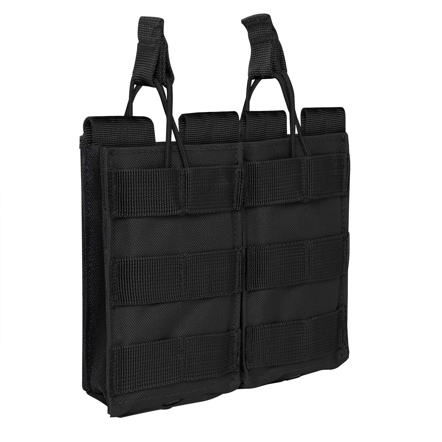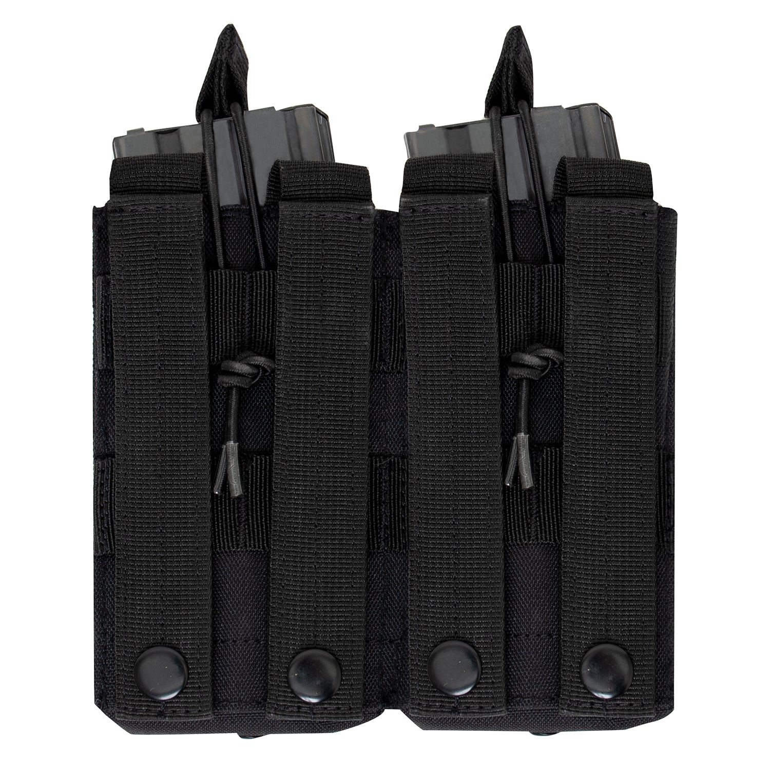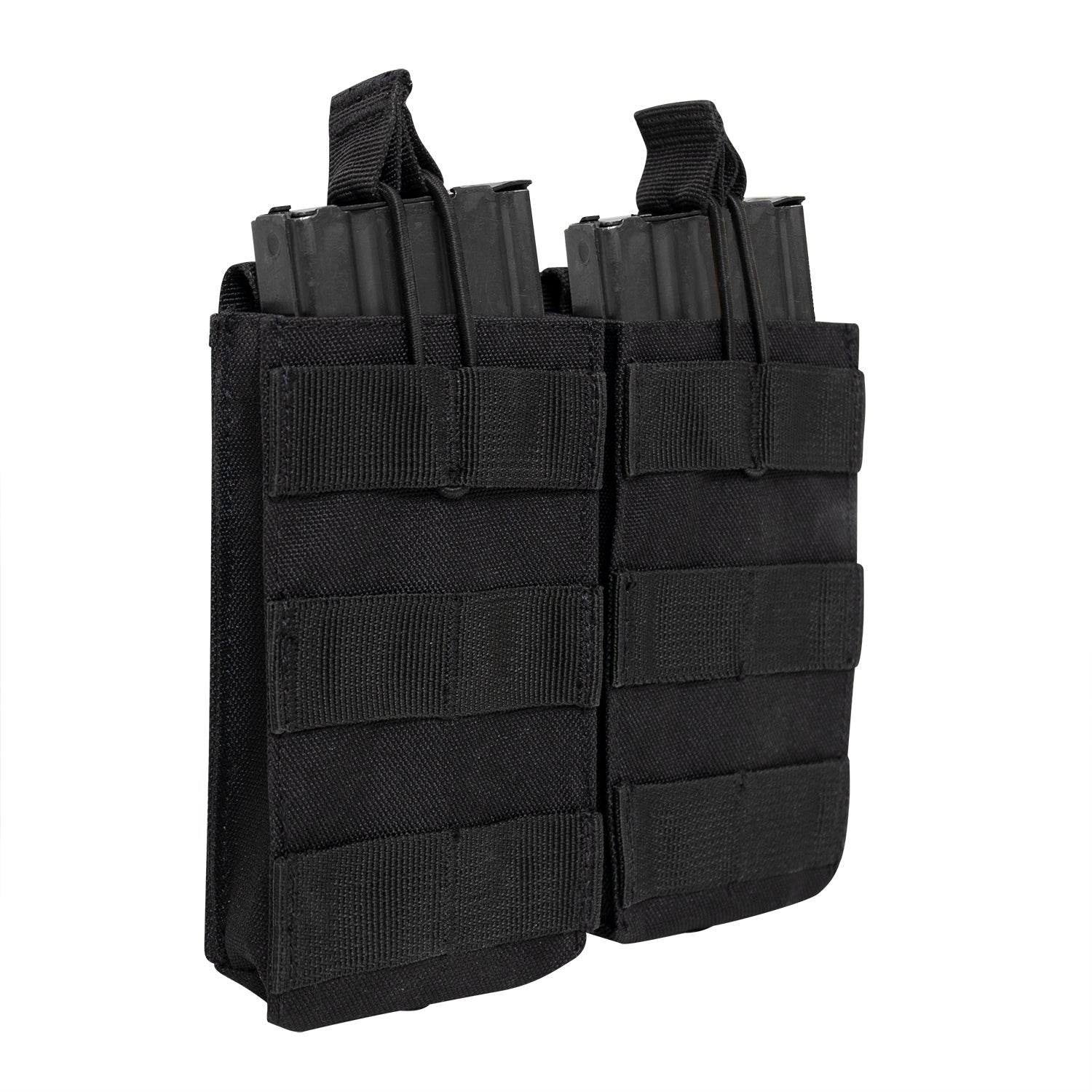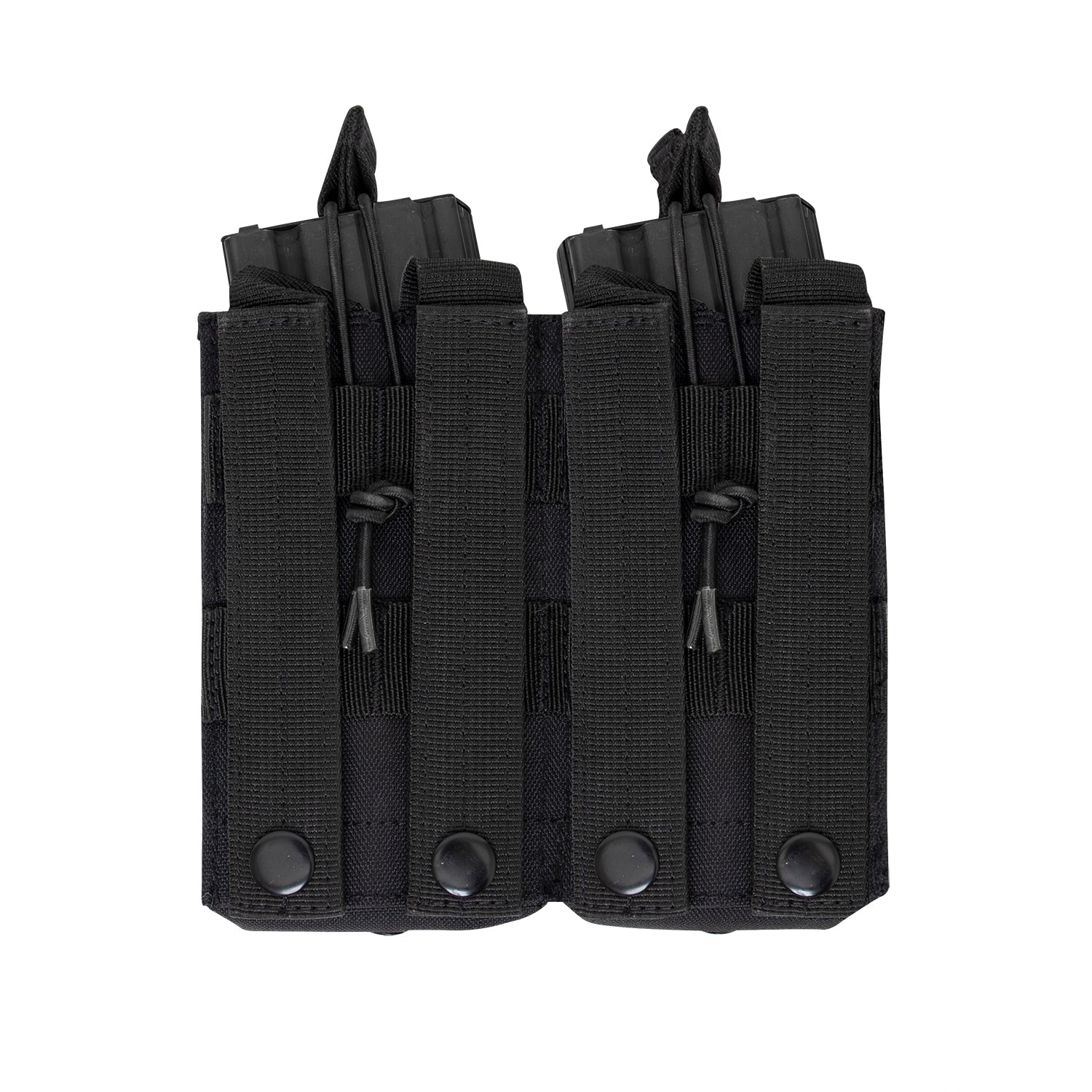 Safely secure your spare mags at the range with Rothco’s MOLLE Open Top Double Mag Pouch. This MOLLE compatible double magazine pouch with four MOLLE straps on the back and six MOLLE loops on the front for securing to tactical vests, assault packs, duty belts, or anything with a MOLLE panel. The mag pouch features elastic cord closures with pull tabs that enable rapid access to your ammo. Rothco’s tactical magazine pouch reliably fits standard-sized M-16 mags, AK-47 mags, and more.
