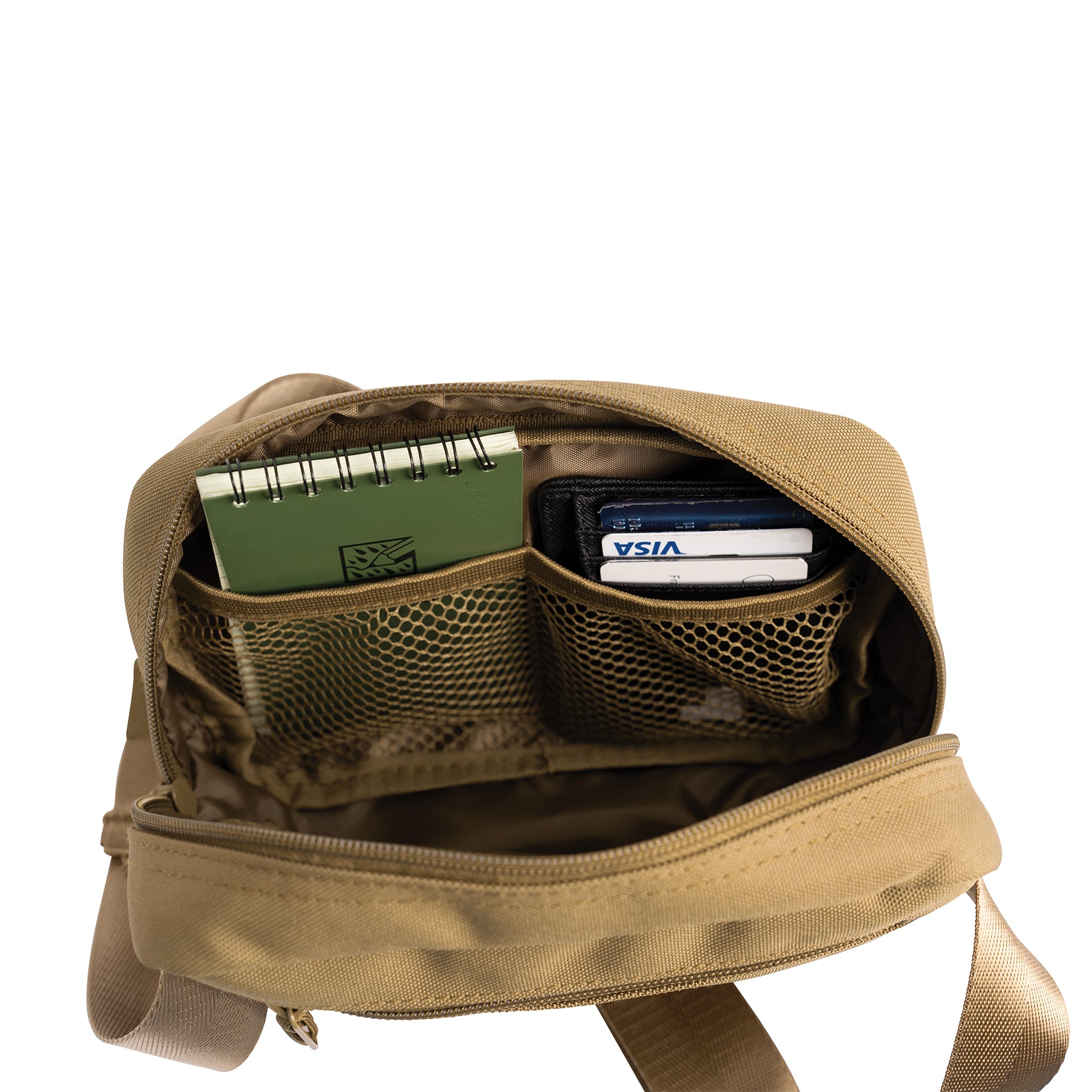 Built with everyday practicality and comfort, our Crossbody Day Bag keeps your possessions close to you, right where you need them. Compact and designed to fit comfortably between your shoulder blades, this crossbody organizer bag has a 2L capacity that is ideal for travel and measures 8 inch x 5.5 inch x 3 inch. On-the-Go Ruggedness: Designed to stay with you every step of the way, the travel bag is made with a robust 1000D nylon construction that easily withstands any environment. This belt bag is a must-have for traveling, commuting, concert-going, adventuring, and more. Stay Organized: The crossbody bag offers substantial storage space inside the main compartment for EDC essentials, such as a phone and wallet. The 3 mesh pockets are perfect for carrying small items, while the internal clip is great for securing keys or accessories. Safe & Secure Zipper Closures: The main compartment utilizes a two-way zipper that opens at both ends for quick and easy access. In addition, the lightweight organizer bag features 2 exterior zipper pockets on the front and back for paperwork, cash, earbuds, chargers, and more. Various Carry Options: This versatile belt bag uses an adjustable nylon strap with a side release buckle that extends up to 46 inches, allowing you to wear it across your body as crossbody bag or around your waist as a fanny pack.