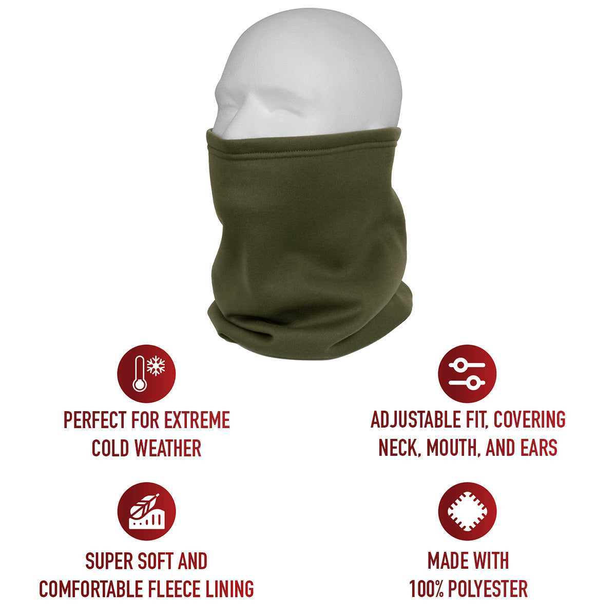 Rothco's ECWCS Polyester Neck Gaiter is the ultimate cold weather accessory. Crafted from 100% polyester with a soft fleece lining, it offers exceptional warmth and comfort. Its adjustable design allows for coverage of the neck, mouth, and ears, providing versatile protection against harsh weather conditions. This neck gaiter can also be worn as a headband or earmuffs, making it a versatile addition to any outdoor enthusiast's gear collection. Whether you're braving extreme cold weather climates or simply need extra warmth on chilly days, this neck gaiter is perfect for all your cold weather adventures. With its one-size-fits-most design, it ensures a snug and comfortable fit for everyone.