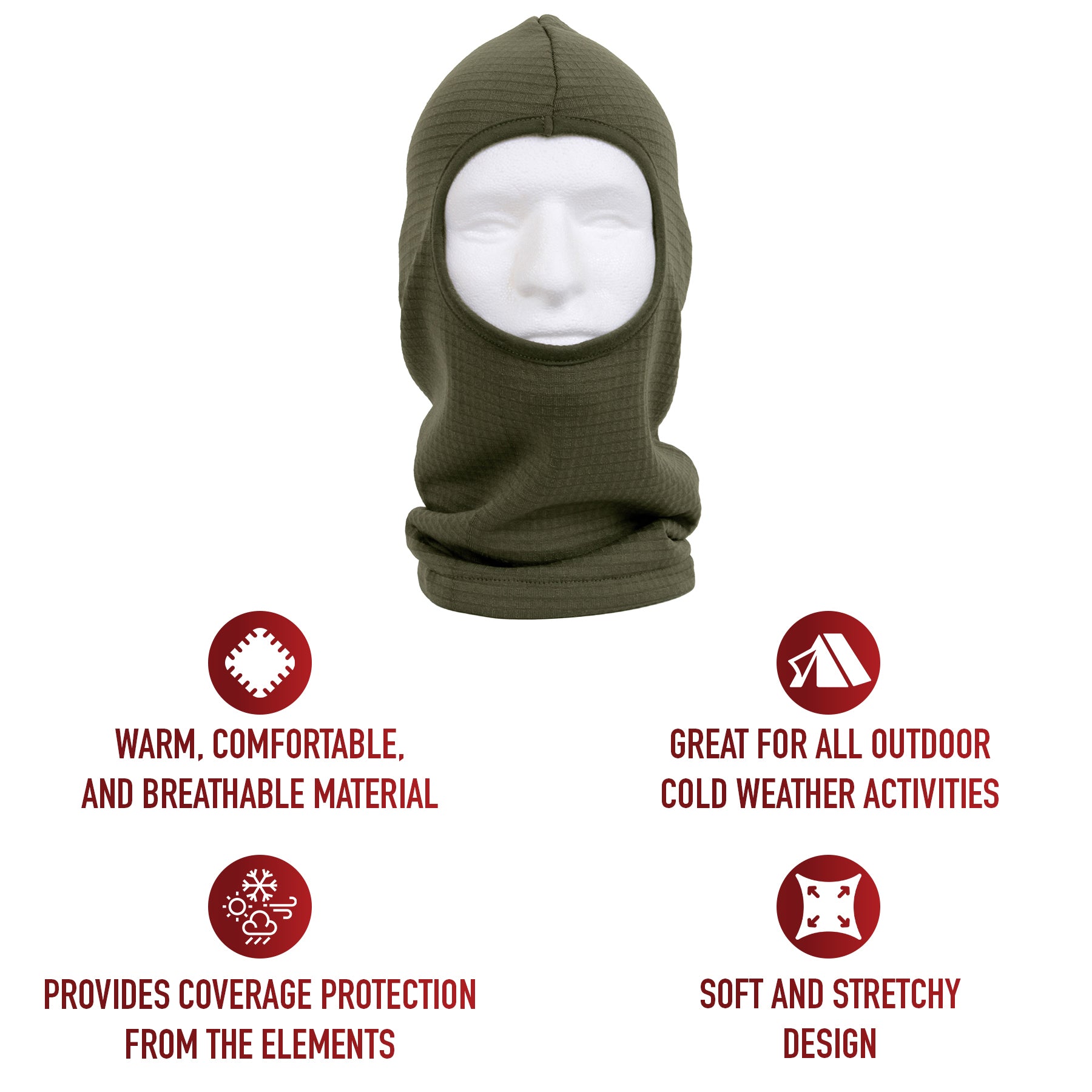 Part of the Extreme Cold Weather Clothing System (ECWCS), the Military Generation III Balaclava is a light yet warm head covering. Made of a Polyester/Spandex blend, this balaclava wicks away moisture and is one size fits most. It's designed to provide cold weather protection while keeping you dry and comfortable. The one-size-fits-most design ensures convenience for various users, while the soft and snug fabric offers comfort for prolonged wear. Built with durability in mind, this balaclava is made to withstand harsh environments, making it an essential accessory for extreme weather conditions. Keep your head in the game with Rothco’s collection of headwear and accessories. Designed with precision and purpose, our headgear is built to withstand the harshest conditions. Whether you’re tackling the cold in one of our Watch Caps or Balaclavas, or out on a mission in a Boonie Hat or Fatigue Cap, our diverse range of headwear provides unmatched comfort and protection for everyone from active-duty personnel to outdoor enthusiasts.