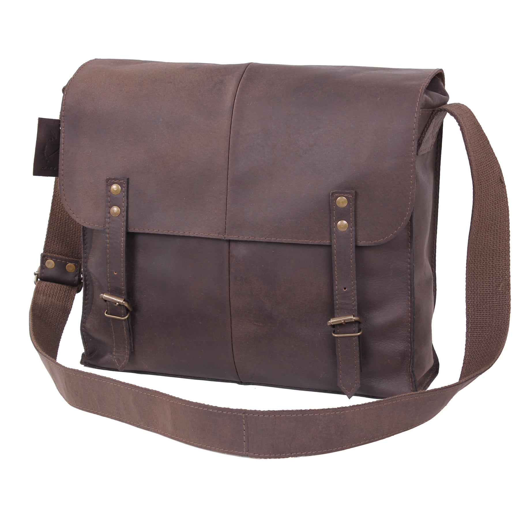 Rothco's Brown Leather Medic Bag is made with a premium rugged leather that is both durable and stylish. The leather medic bag features a large main compartment w/interior zippered pocket, front flap w/leather strap closures, 1½" wide adjustable leather shoulder strap, antique brass hardware, 12½" x 11" x 3½"