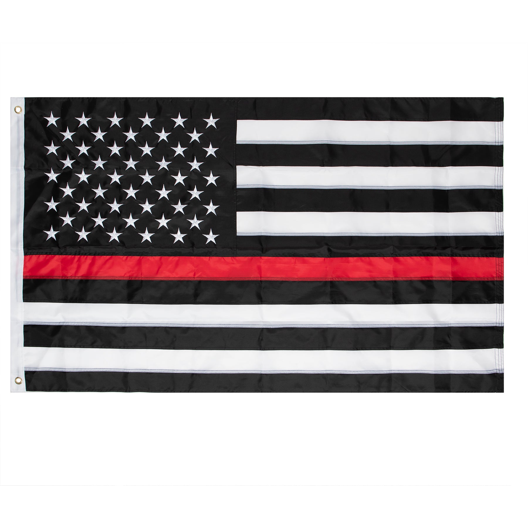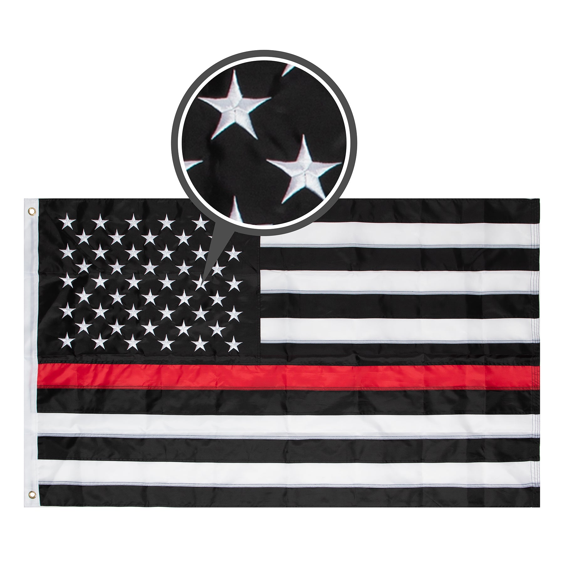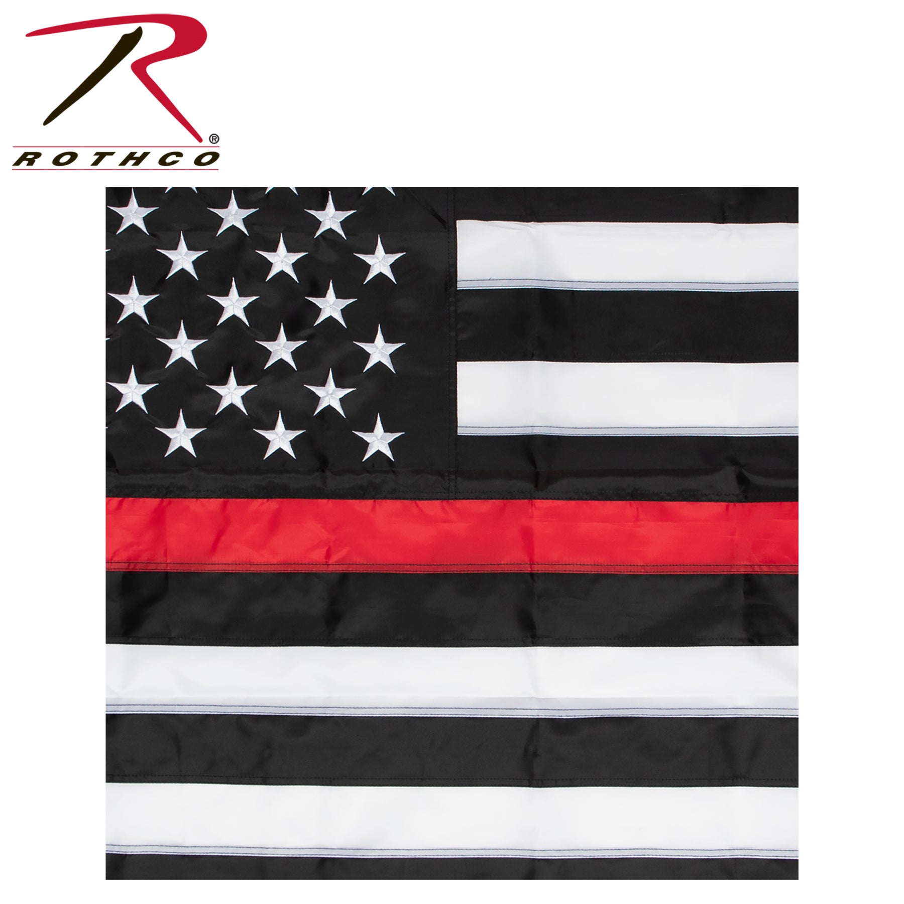 Honor the brave firefighters with Rothco's Thin Red Line US Flag featuring embroidered stars and a vibrant red stripe.
