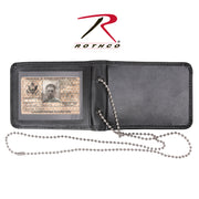 Rothco’s Leather Neck Identification Holder provides secure, convenient storage for your ID, license, or other important documents. This sleek ID holder features a transparent 3.25 inch x 2.25 inch window to display your ID clearly, along with a 33 inch chain for wearing it around your neck, ensuring easy access at all times. Its bi-fold design, secured with a hook & loop closure, keeps your belongings safe and protected. The internal pocket offers additional storage for credit cards, cash, or even the chain when not in use. Made from durable leather, this holder has a professional and polished appearance, suitable for various settings. Whether you're at work or carrying essential documentation, this ID holder keeps everything organized and easily accessible. It can also be attached to a belt for added versatility, making it perfect for anyone who needs quick access to identification.