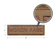 Show off your inner Spartan with the Rothco Molon Labe Morale Patch; featuring an embroidered "Molon Labe" text. The morale patches feature a hook backing which makes it ideal for attaching to our Special Ops Jackets, Transport Packs, Tactical Vest and more.