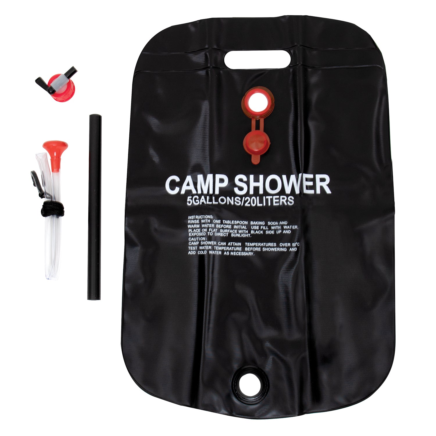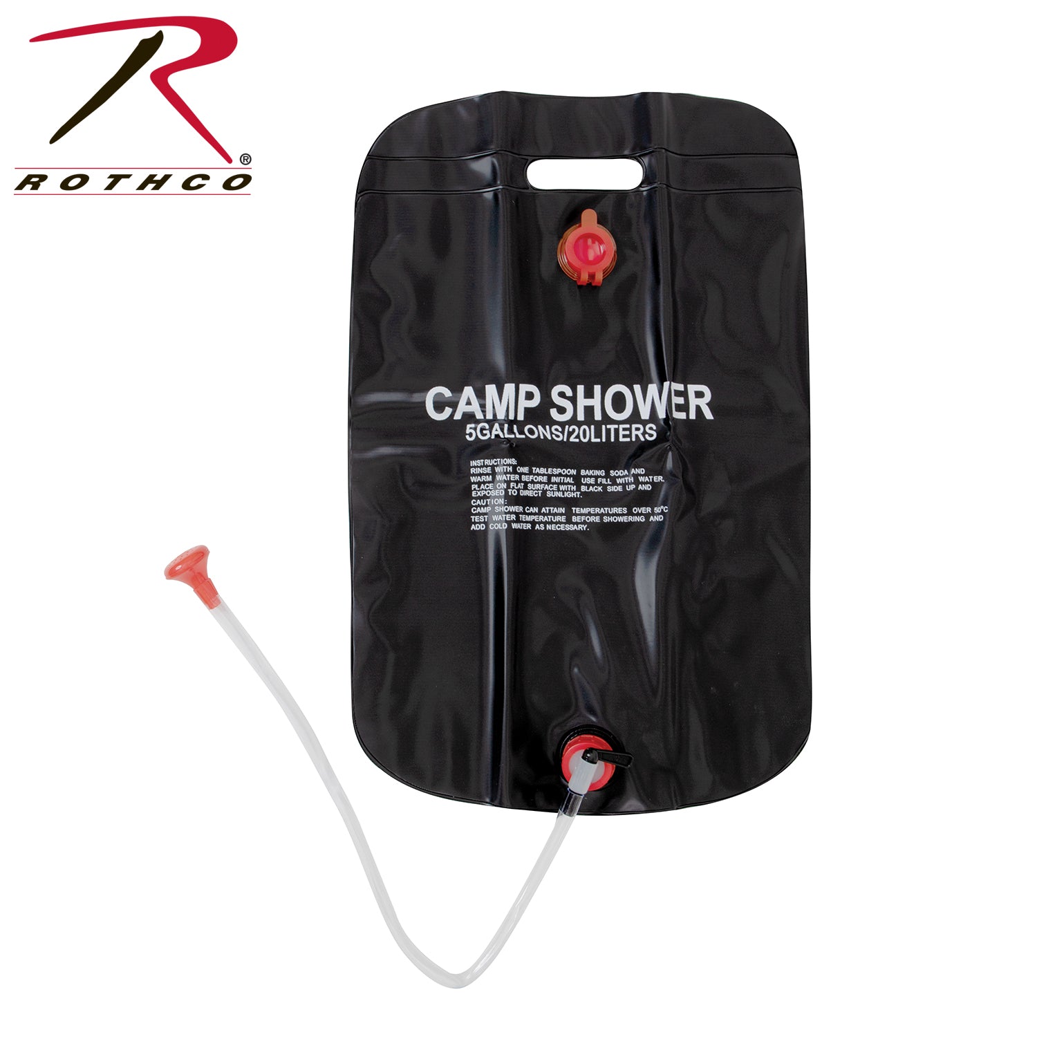 Another great camping and survival item! Rothco's Solar Camp Shower includes a hose and shower head, On/Off Control, and holds approximately 5 Gallons of water for use.