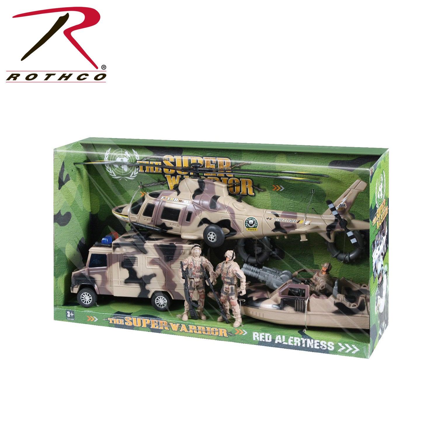Fuel your child’s imagination with Rothco’s Super Warrior Vehicle Play Set, a 10-piece toy collection designed to provide endless hours of fun. This classic play set includes everything your little one needs for action-packed adventures, featuring 3 action figures, 2 guns, a boat, a helicopter, a truck, and 2 life preservers. Crafted from durable plastic, these rugged toys are built to withstand countless play sessions, whether indoors or outdoors. The Super Warrior Vehicle Play Set is more than just toys—it's a gateway to creativity, role-playing, and storytelling that will keep kids entertained for hours. Perfect for birthdays, holidays, or party favors, this play set makes a fantastic gift that children will love. With a variety of vehicles and figures, the possibilities for fun are limitless.