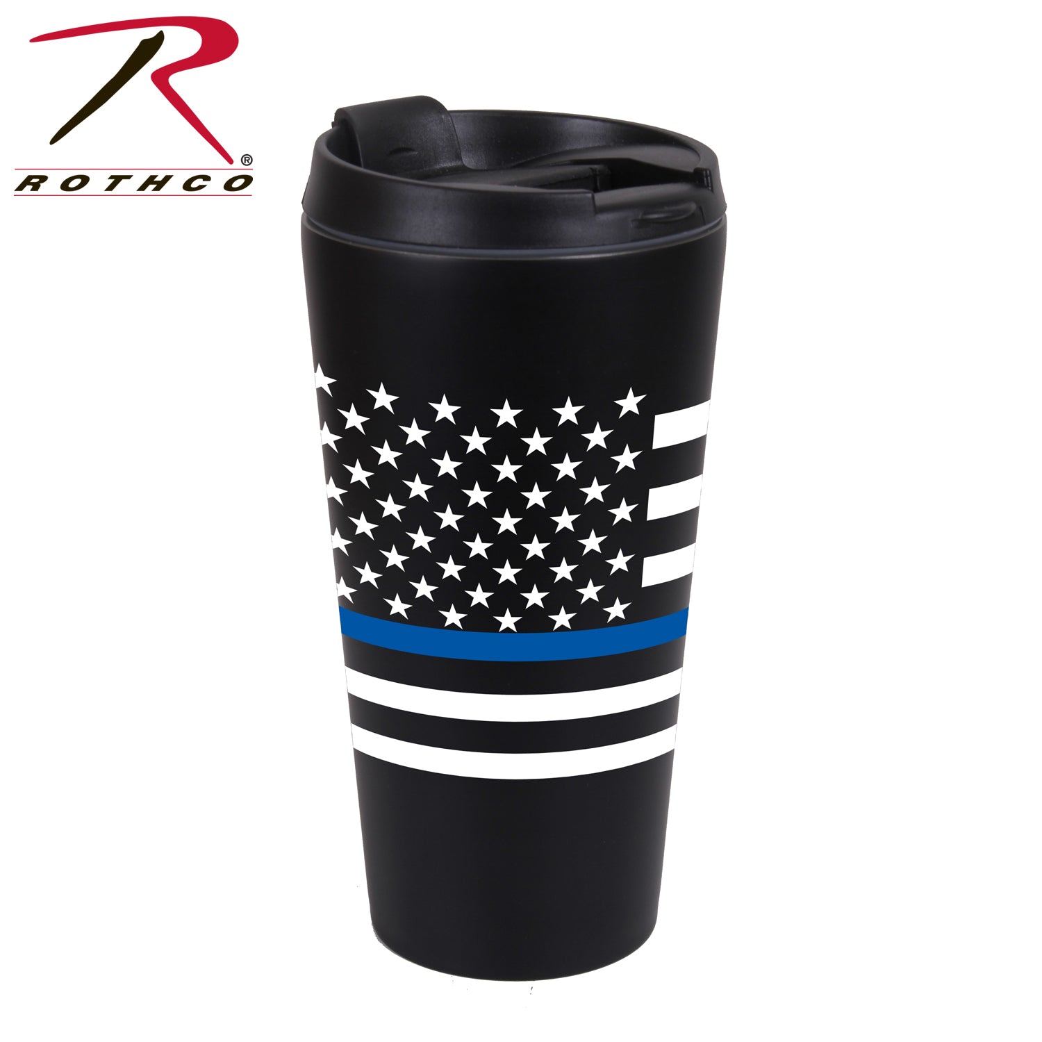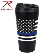 Show your support for law enforcement with Rothco’s Thin Blue Line Flag Travel Mug. This travel mug holds 16 fluid ounces and is constructed with double-walled, stainless steel insulation to keep your beverages at the ideal temperature, whether hot or cold. The sleek design features the Thin Blue Line flag printed on the front, symbolizing respect and support for law enforcement officials. Its screw-off cap with a convenient flip-top makes it easy to sip on the go without spills. Measuring 6.75 inches in height and 3.5 inches in diameter at the widest point, the mug fits easily in most cup holders and backpacks. Whether you're commuting, working, or enjoying an outdoor adventure, this travel mug is a great way to stay hydrated while showing your appreciation for those who serve. Plus, proceeds from your purchase benefit the families of fallen first responders.