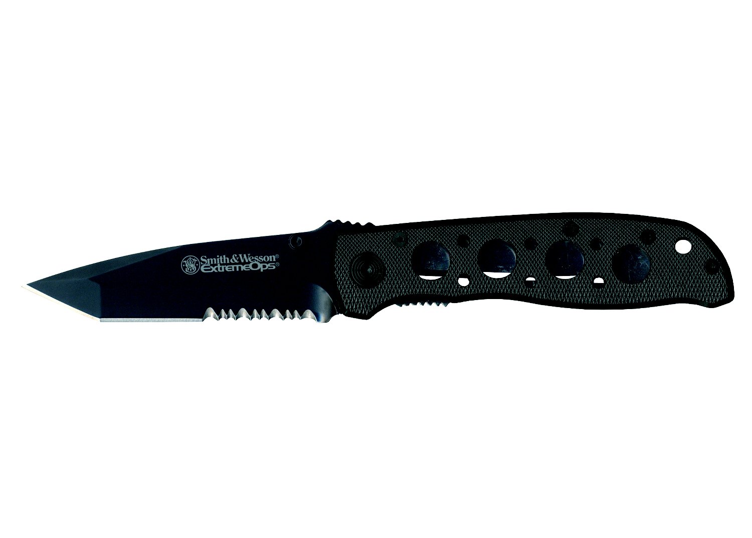 Smith & Wesson’s Extreme OPS Folding Knife is the ultimate tool for outdoor enthusiasts and everyday carry (EDC) aficionados. Designed with a versatile, partially serrated combo blade, this knife excels in cutting through tough materials like rope and fabric, making it indispensable for camping, hunting, and survival situations. The blade is made from rugged stainless steel, ensuring long-lasting sharpness and durability. With a blade length of 3.25 inches and an overall length of 7.38 inches, this folding knife strikes the perfect balance between portability and functionality. The textured black aluminum handle enhances your grip, providing comfort and control even in wet or slippery conditions. Additionally, the survival knife comes with a convenient pocket clip, allowing you to easily mount it on your pants, belt, or backpack for quick access. Whether you’re heading into the wilderness or need a reliable EDC tool, the Smith & Wesson Extreme OPS Folding Knife is your go-to companion.
