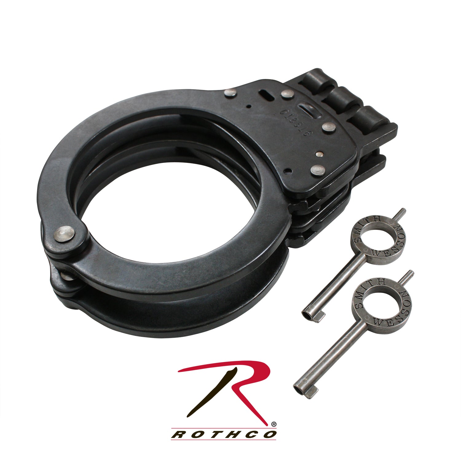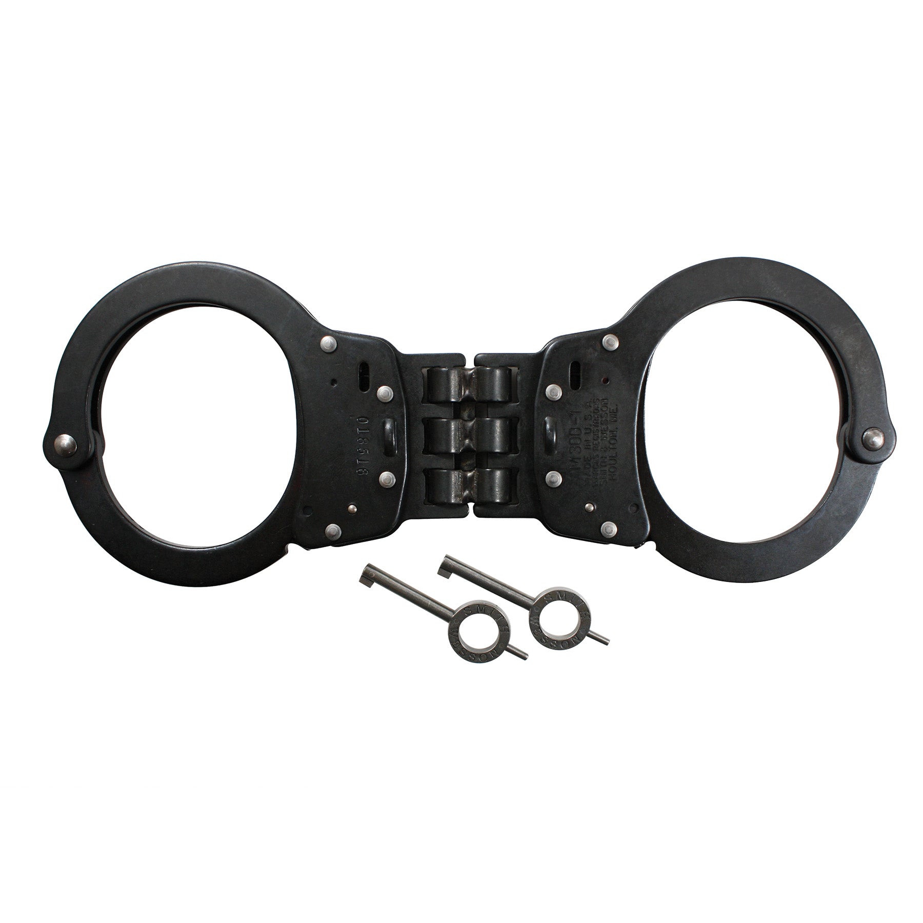 The Smith and Wesson hinged black handcuffs pass all NILEC and NJI specifications. It has a double lock slot and uses a standard key. Each handcuffs are stamped with serial number and model number.