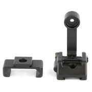 M2 Sight Rear- Griffin armament is proud to introduce affordable Micro Modular Sights compatible with Picatinny rail systems. Griffin M2 sights offer an industry first, patent pending, modular base plate system. Constructed from QPQ Treated 17-4 and ordnance grade steel, Griffin M2 Sights were designed to be the correct product for every backup sight application. A shooter can use these durable, low profile sights in a 12 oclock mounted application while having the flexibility to reconfigure them to ambidextrous 45 degree angle sights using the alternate and available angle plates. This flexibility ensures these sights can be used by anyone and will never end up in a box of undesirable legacy kit. The full M2 deployment kit includes the front and rear sight assemblies as well as both vertical and angled bases for a complete modular system. However, sights and bases are available separately for users who wish to buy parts as needed. The front A2 sight provides elevation adjustment while ensuring maximum aftermarket support for your favorite post, be it tritium, fiber optic, match grade, or otherwise. An extremely low profile, snag resistant, slotted rear windage screw, affords easy but more importantly secure adjustability. Robust spring tension of both front and rear flip up assemblies ensures accurate repeatability every time the sight towers are actuated. Never before has a product in this category offer this degree of flexibility. Griffin M2 Sights have a minimal foot print, and are among the smallest backup sights on the market. For a mere 2 and half ounces your rifle can be equipped with a durable iron sight system, to provide aiming capability in rain, snow, or fog, on or off axis without dependence on batteries or glass.