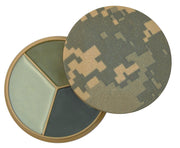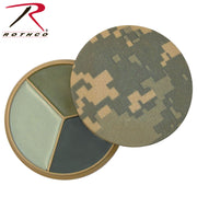 Rothco's 3 color camo face paint pulls essential colors from the ACU camo uniform for an ideal match. The camo facepaint features Desert Sand, Urban Grey, and Foliage Green in an easy-to-use compact with mirror.